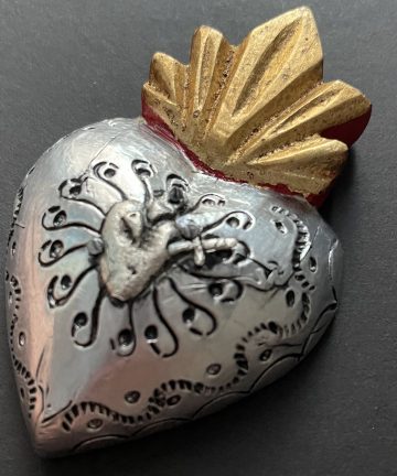 Cuore Sacro Lamina Metallo Argento Small in Legno