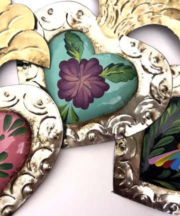Corazon La Esperanza con Flores Large in Metallo