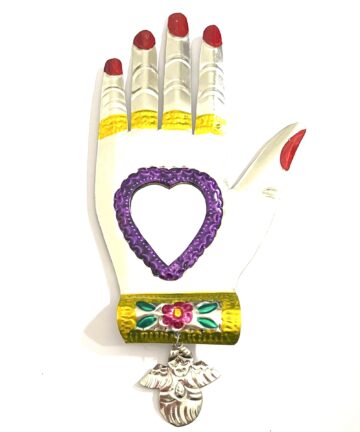 Manita XL Dipinta Miracolo Cuore Argento in Legno