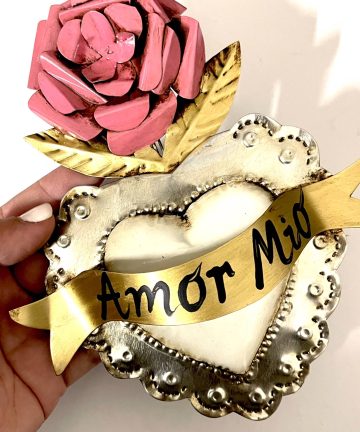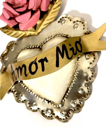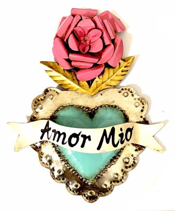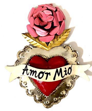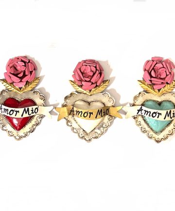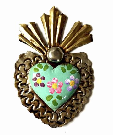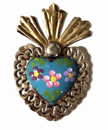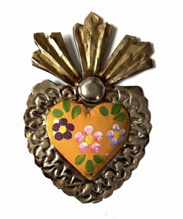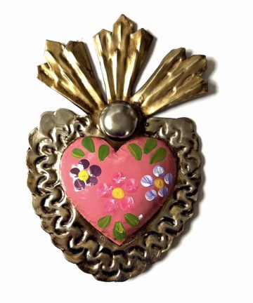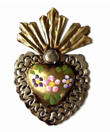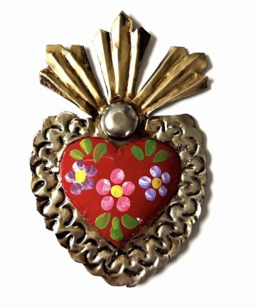 Cuore Sacro Rosso Large Frida con Miracoli Oro in Legno