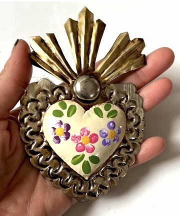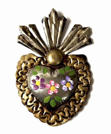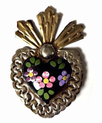 Cuore Sacro Small con Miracoli Argento Cuore in Legno