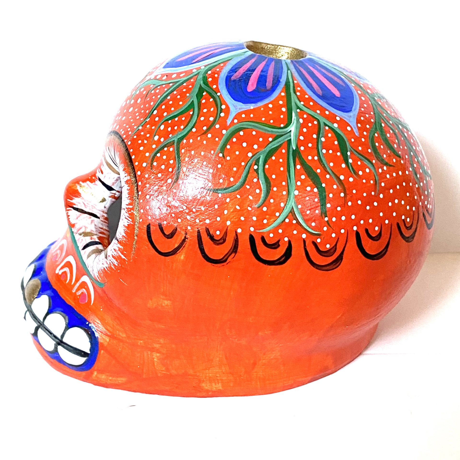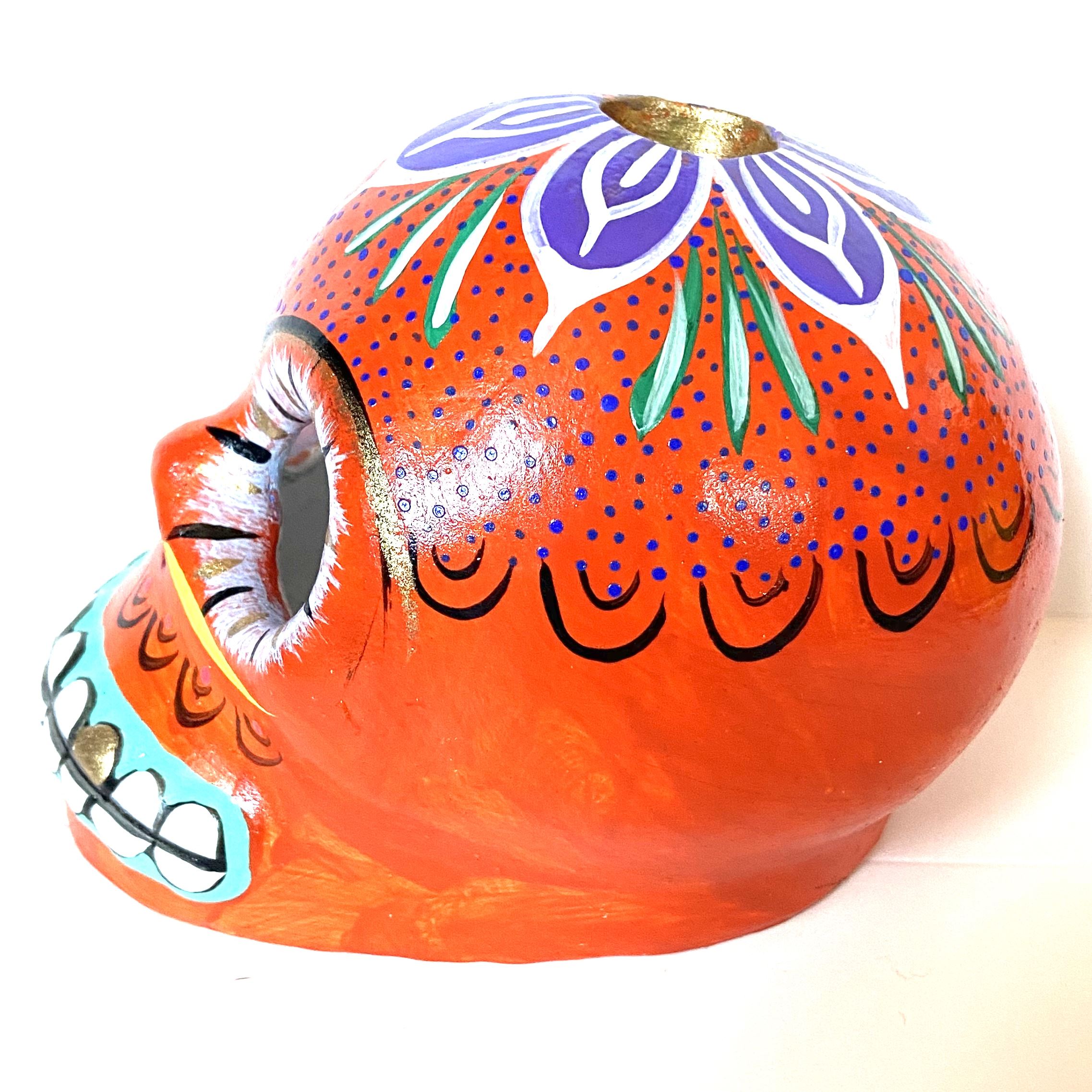 La Calavera è un oggetto decorative realizzato in terracotta proveniente della zona di Oaxaca. Il teschio è realizzato e dipinto a mano da esperti artigiani. Questo complemento d’arredo può essere posizionato su una superficie piatta come un tavolino o una mensola.
