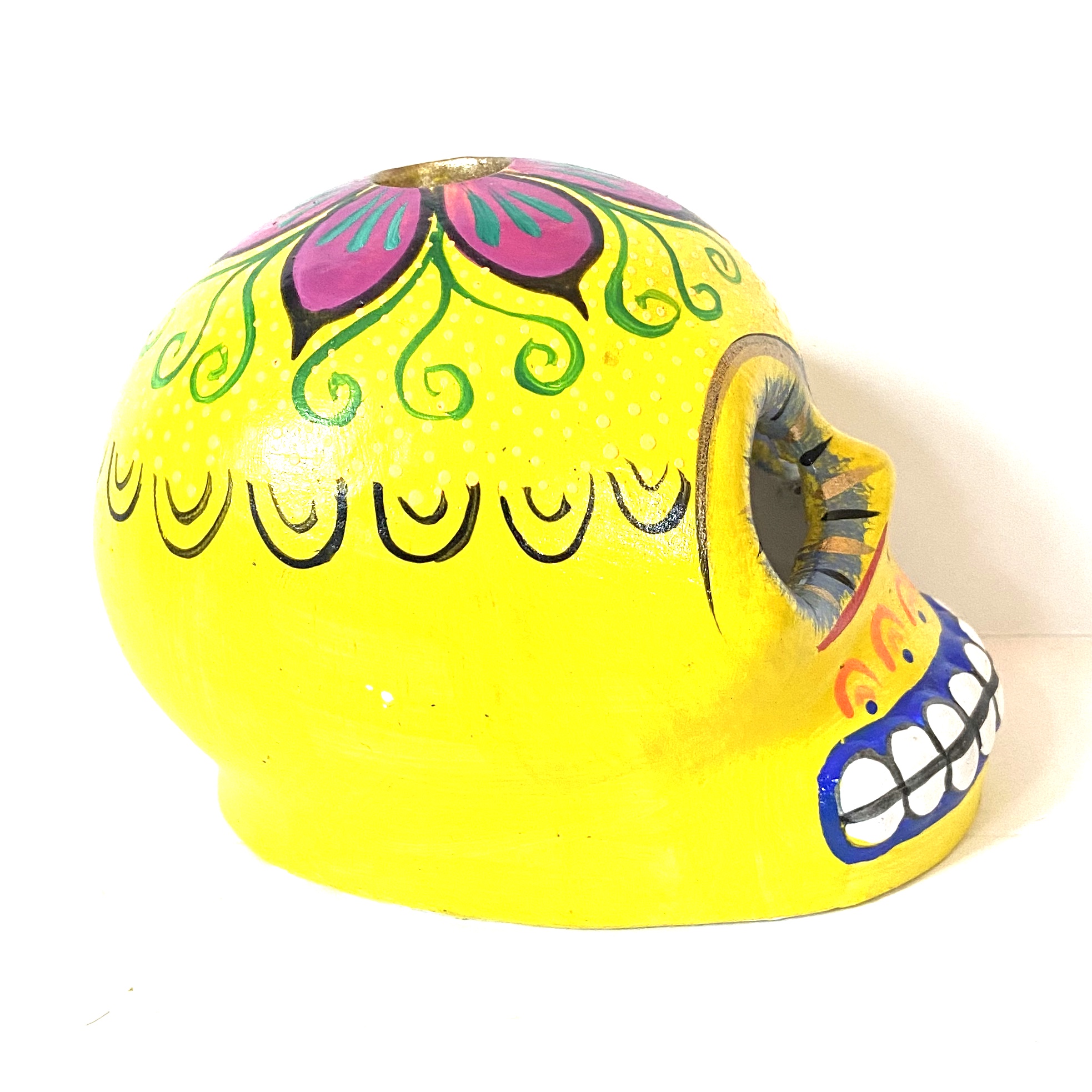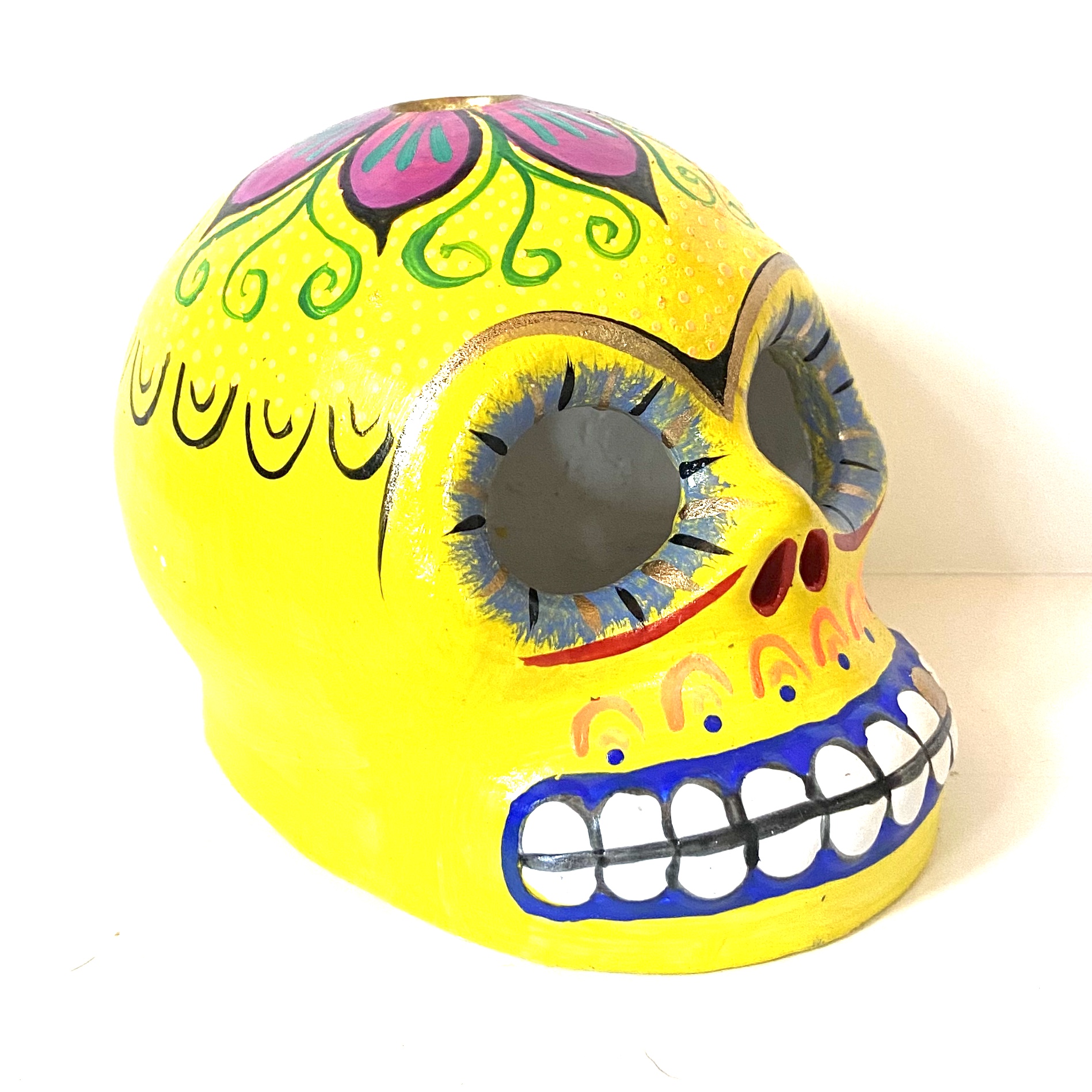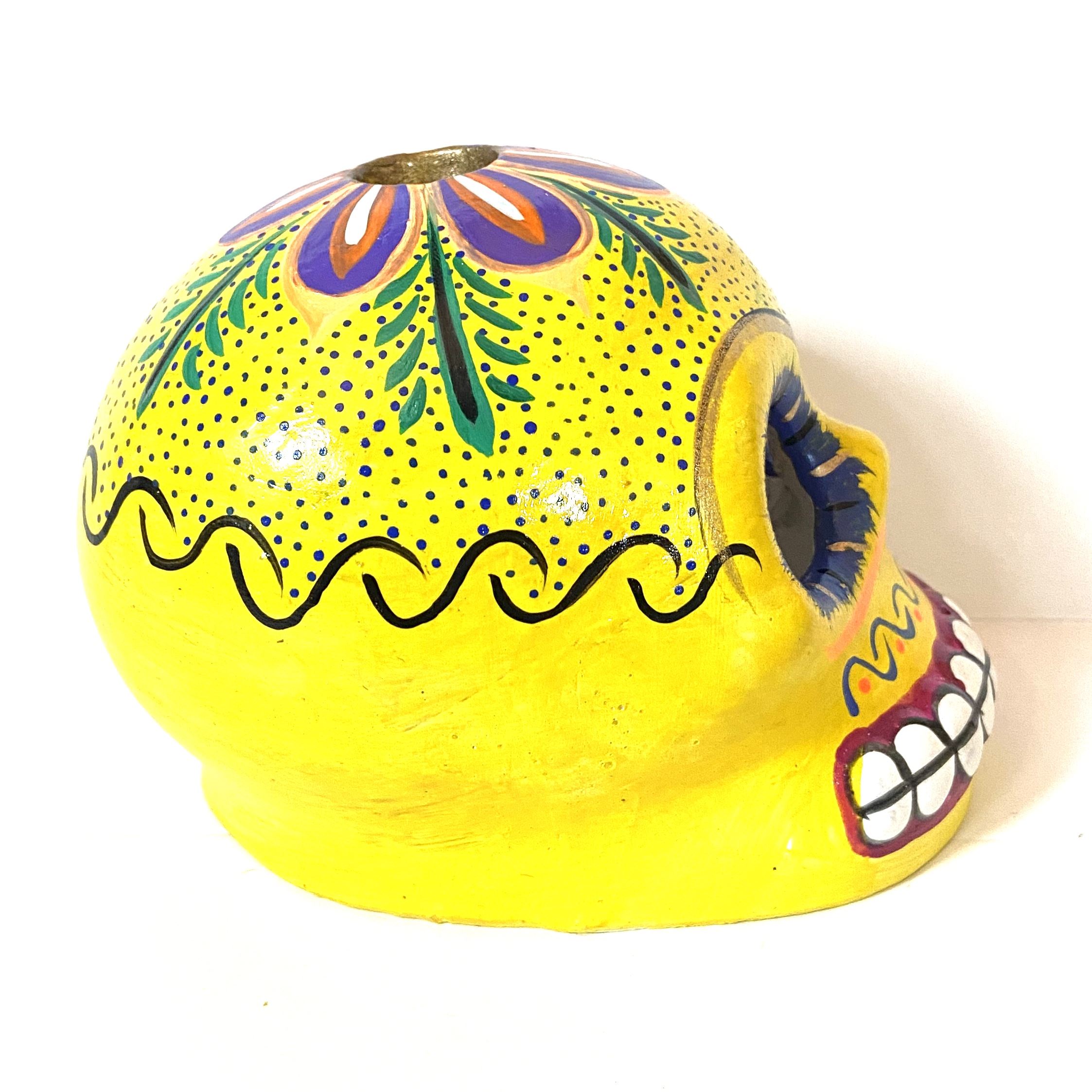 La Calavera è un oggetto decorative realizzato in terracotta proveniente della zona di Oaxaca. Il teschio è realizzato e dipinto a mano da esperti artigiani. Questo complemento d’arredo può essere posizionato su una superficie piatta come un tavolino o una mensola e può essere utilizzato come portacandela.