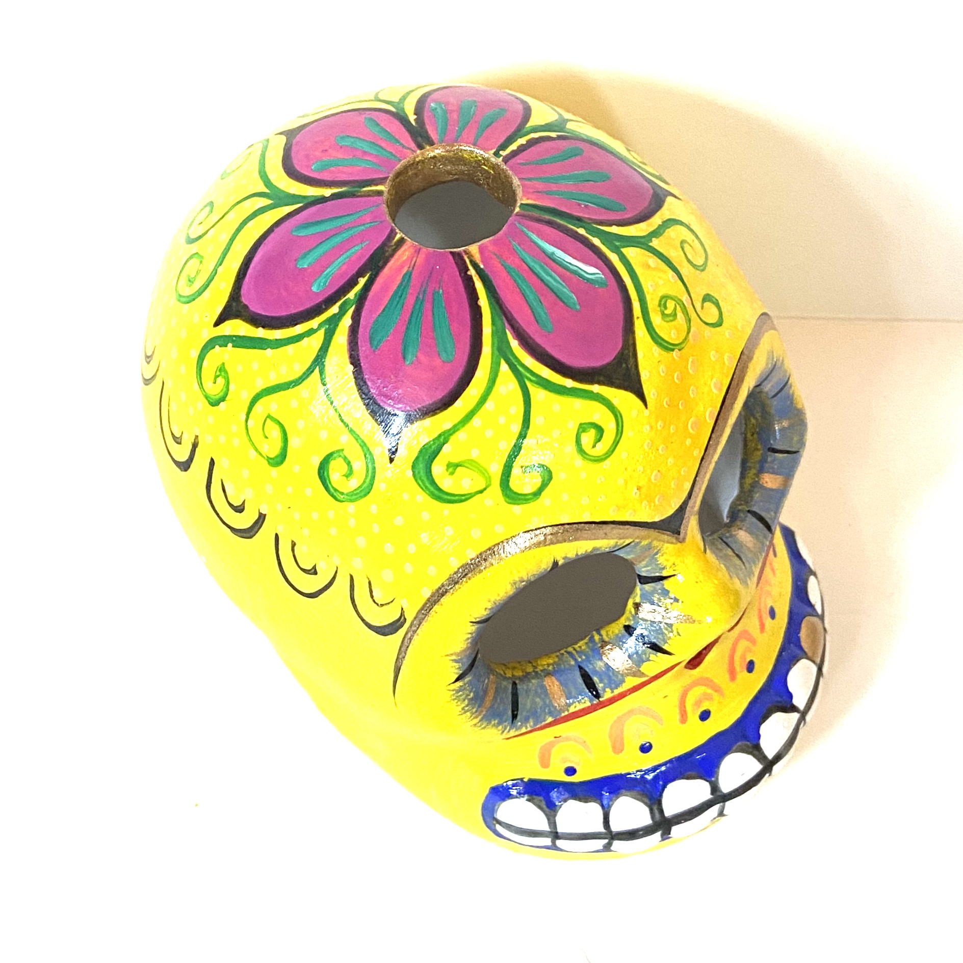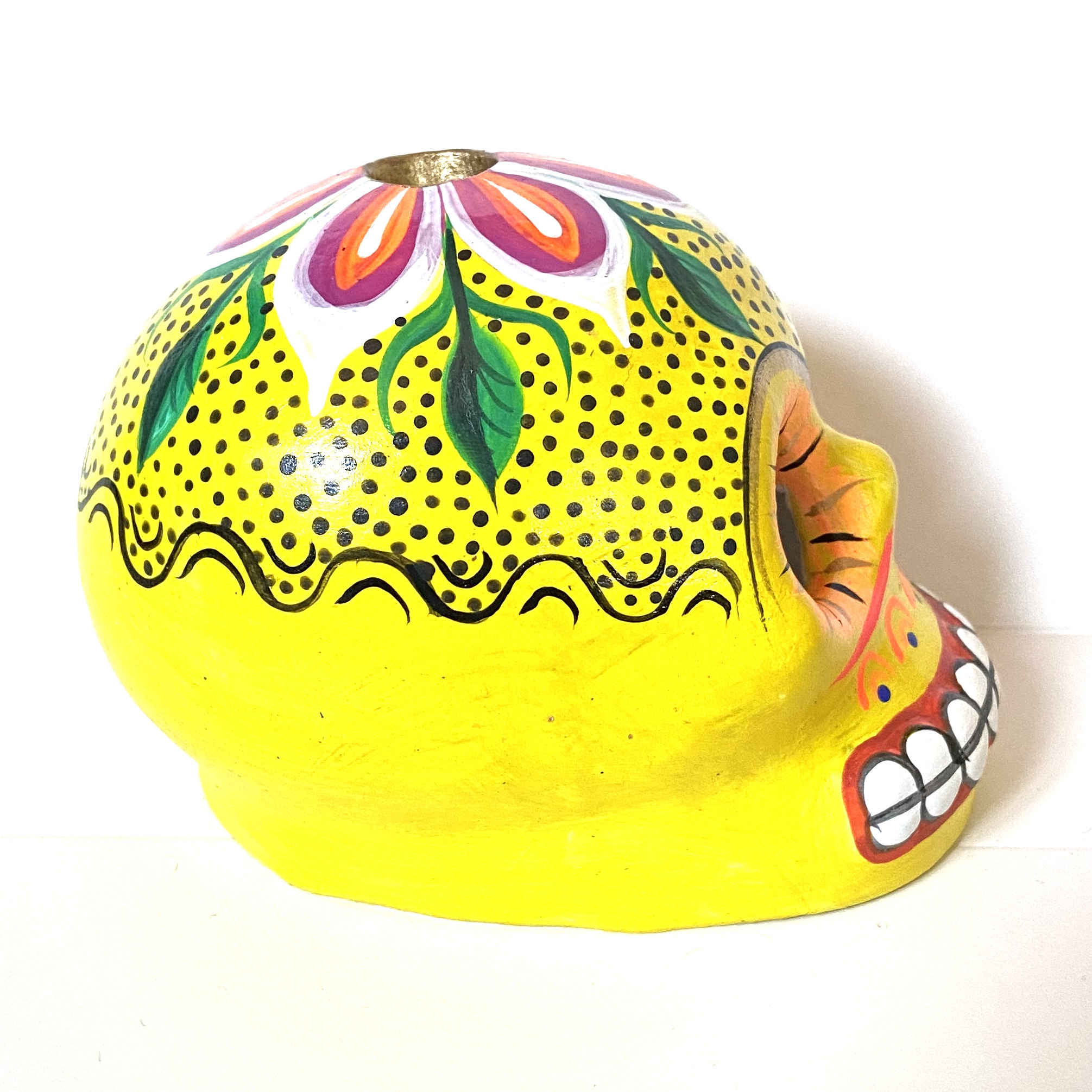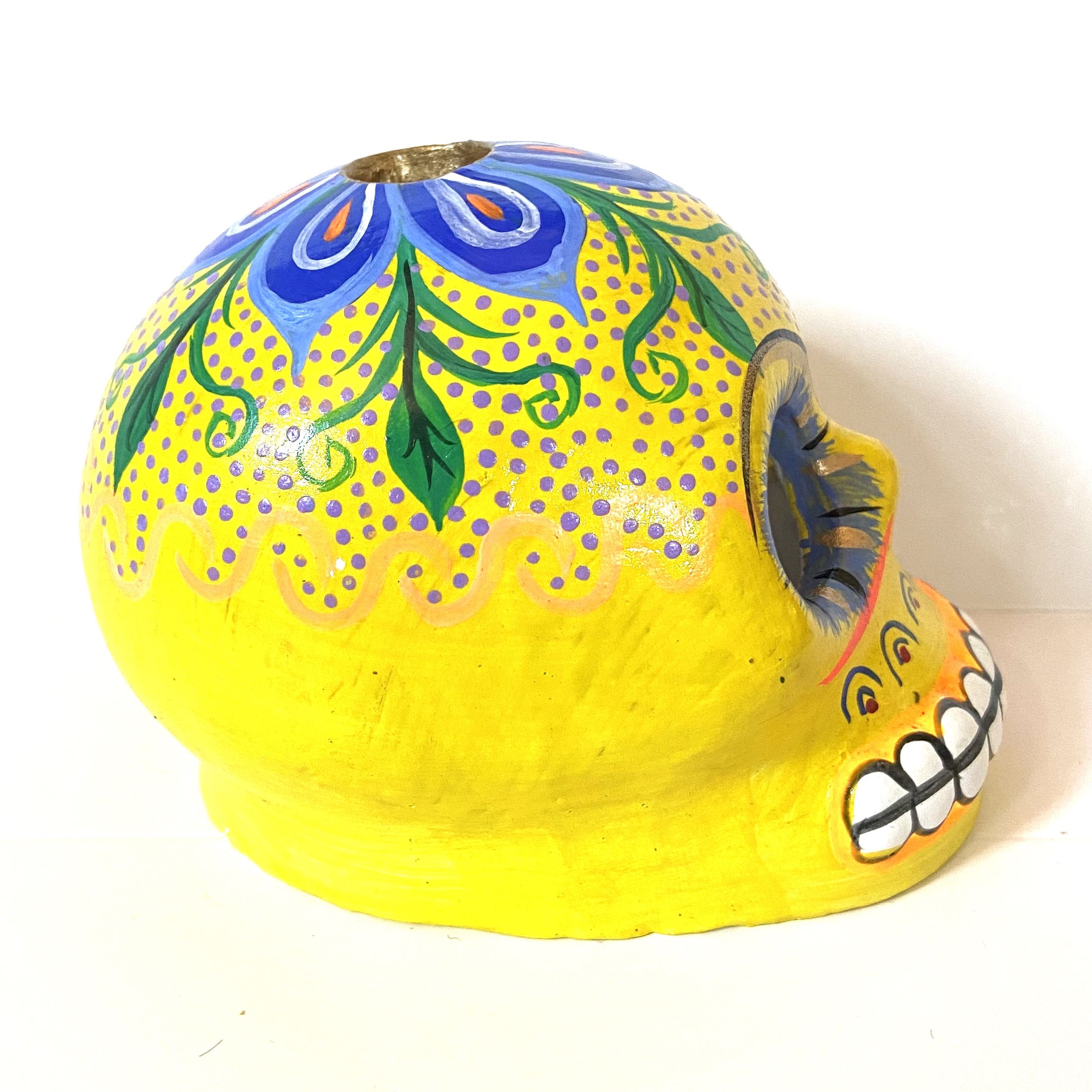La Calavera è un oggetto decorative realizzato in terracotta proveniente della zona di Oaxaca. Il teschio è realizzato e dipinto a mano da esperti artigiani. Questo complemento d’arredo può essere posizionato su una superficie piatta come un tavolino o una mensola e può essere utilizzato come portacandela.