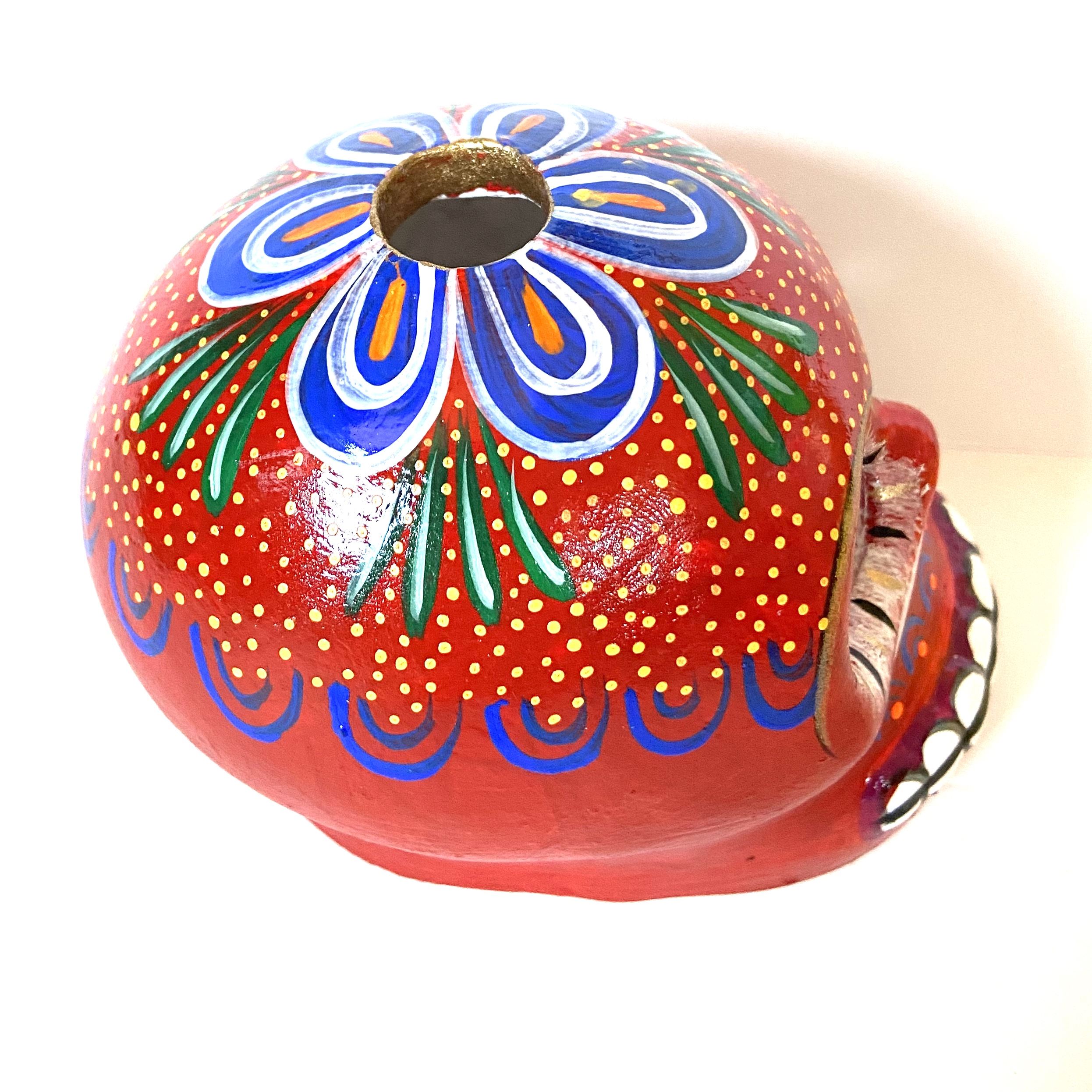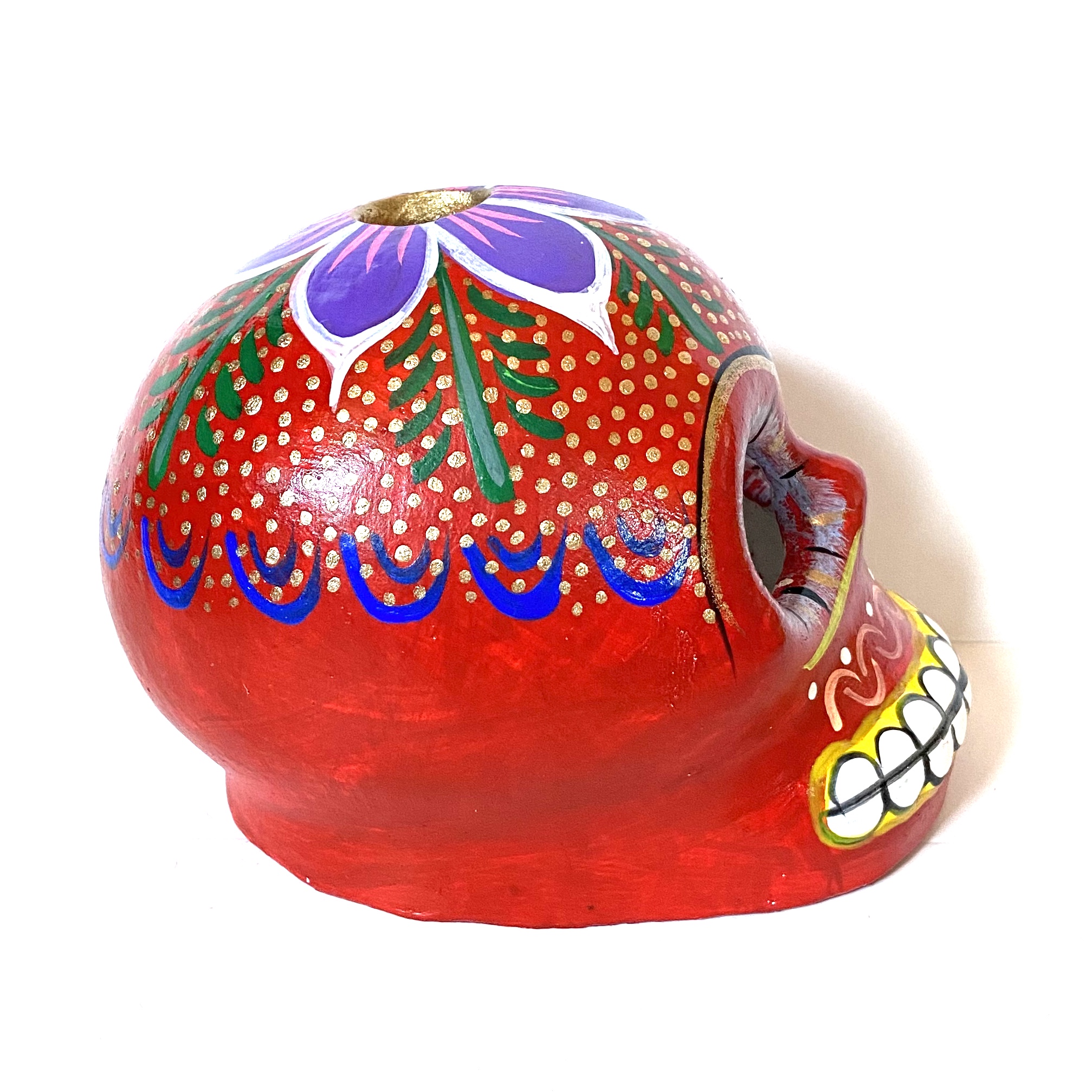 La Calavera è un oggetto decorative realizzato in terracotta proveniente della zona di Oaxaca. Il teschio è realizzato e dipinto a mano da esperti artigiani. Questo complemento d’arredo può essere posizionato su una superficie piatta come un tavolino o una mensola.