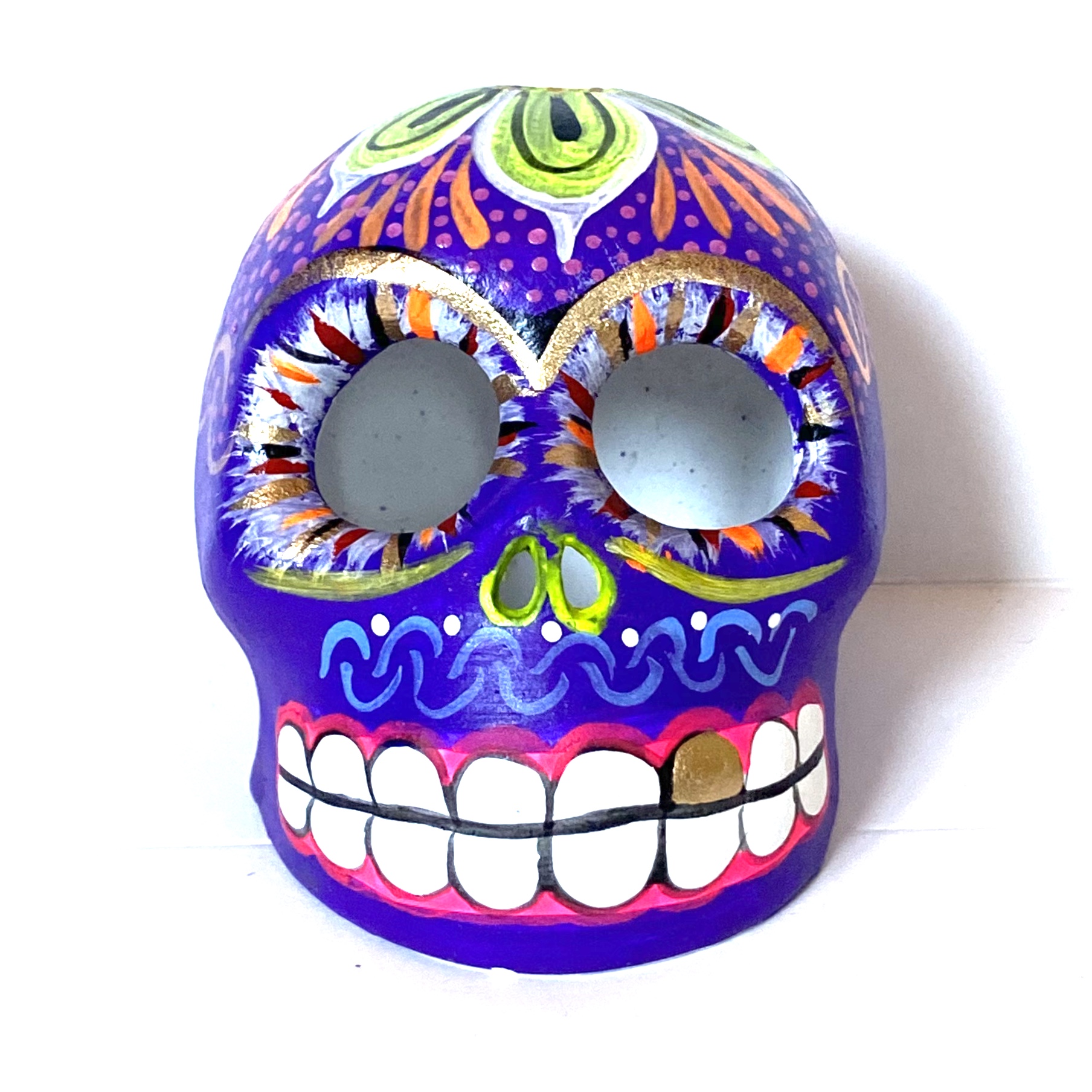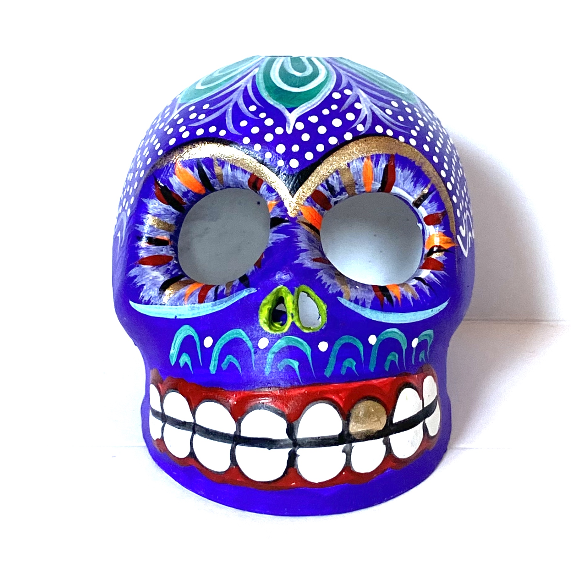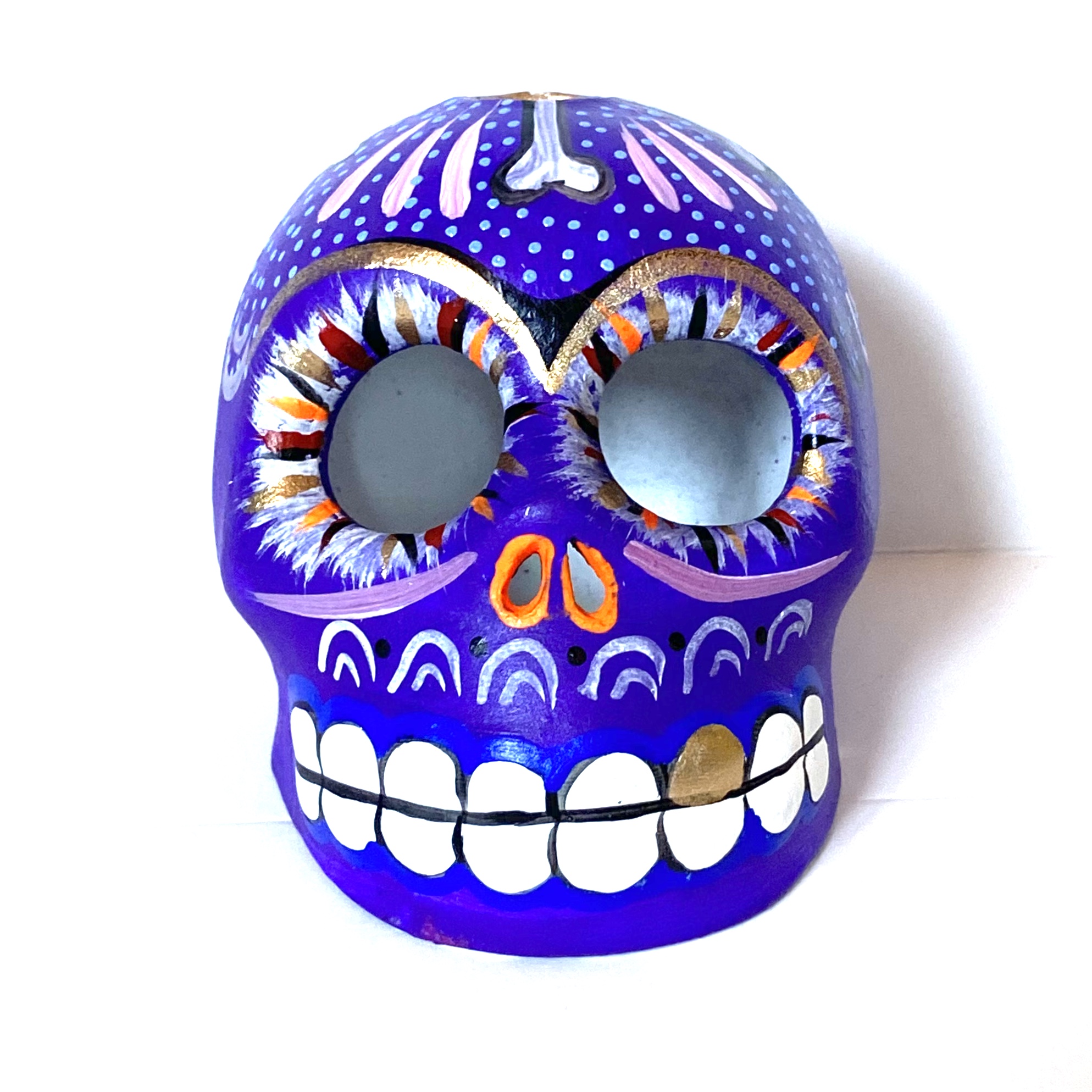 La Calavera è un oggetto decorative realizzato in terracotta proveniente della zona di Oaxaca. Il teschio è realizzato e dipinto a mano da esperti artigiani. Questo complemento d’arredo può essere posizionato su una superficie piatta come un tavolino o una mensola.