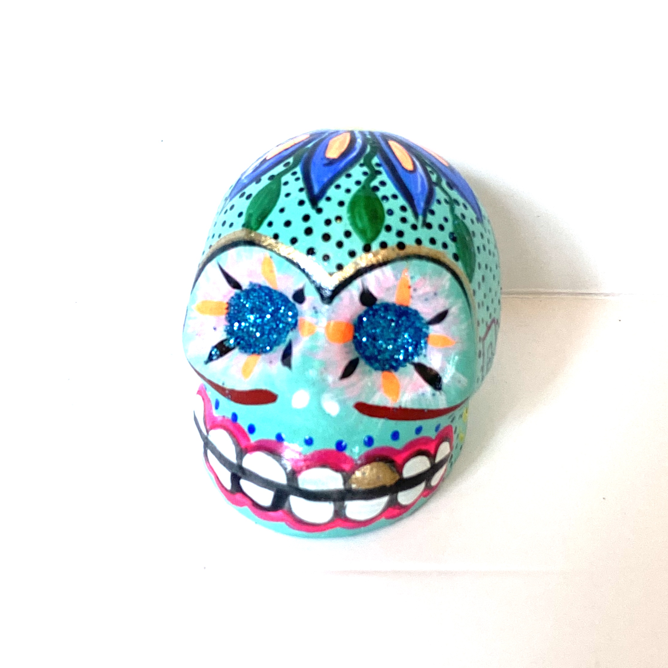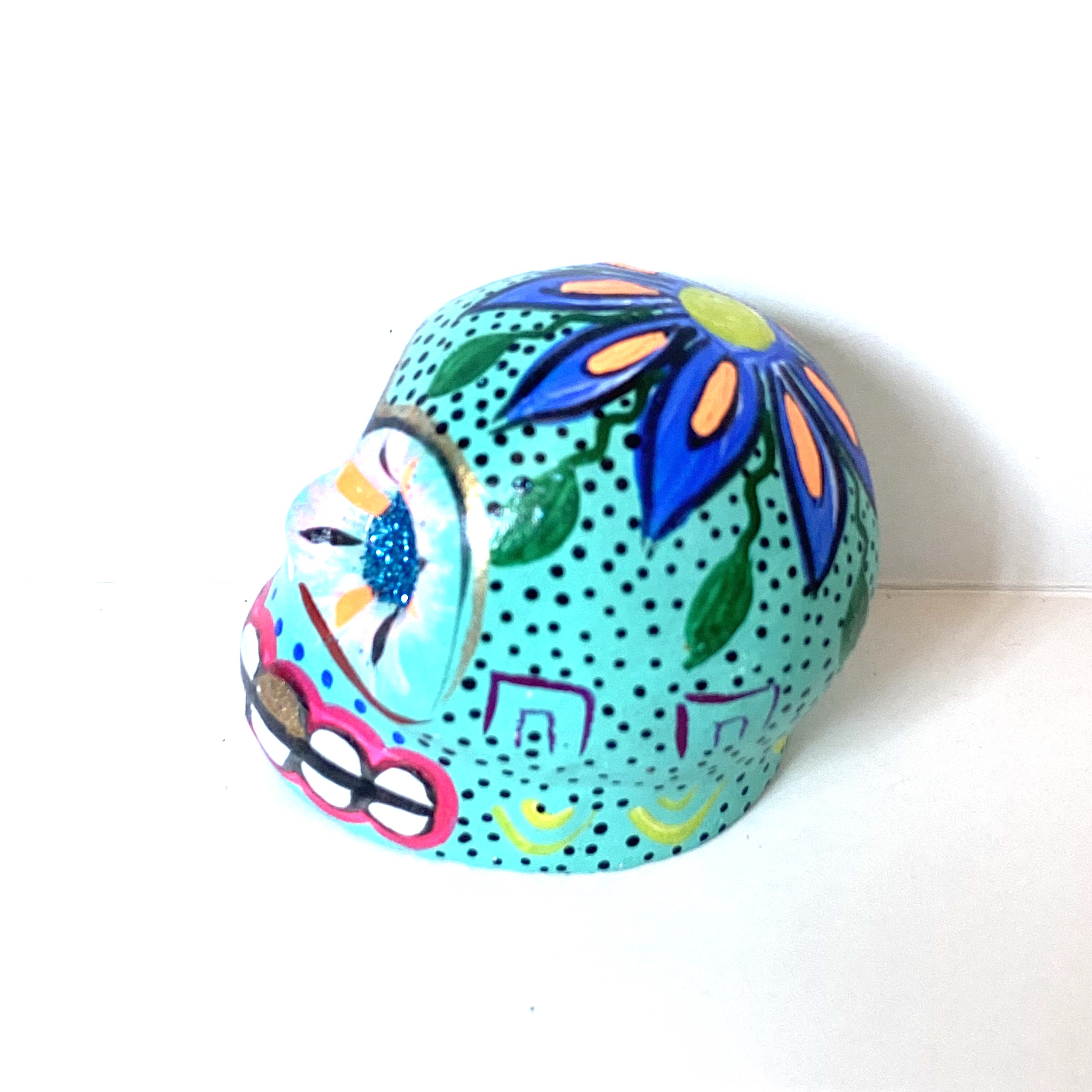 La Calavera è un oggetto decorative realizzato in terracotta proveniente della zona di Oaxaca. Il teschio è realizzato e dipinto a mano da esperti artigiani. Questo complemento d’arredo può essere posizionato su una superficie piatta come un tavolino o una mensola.