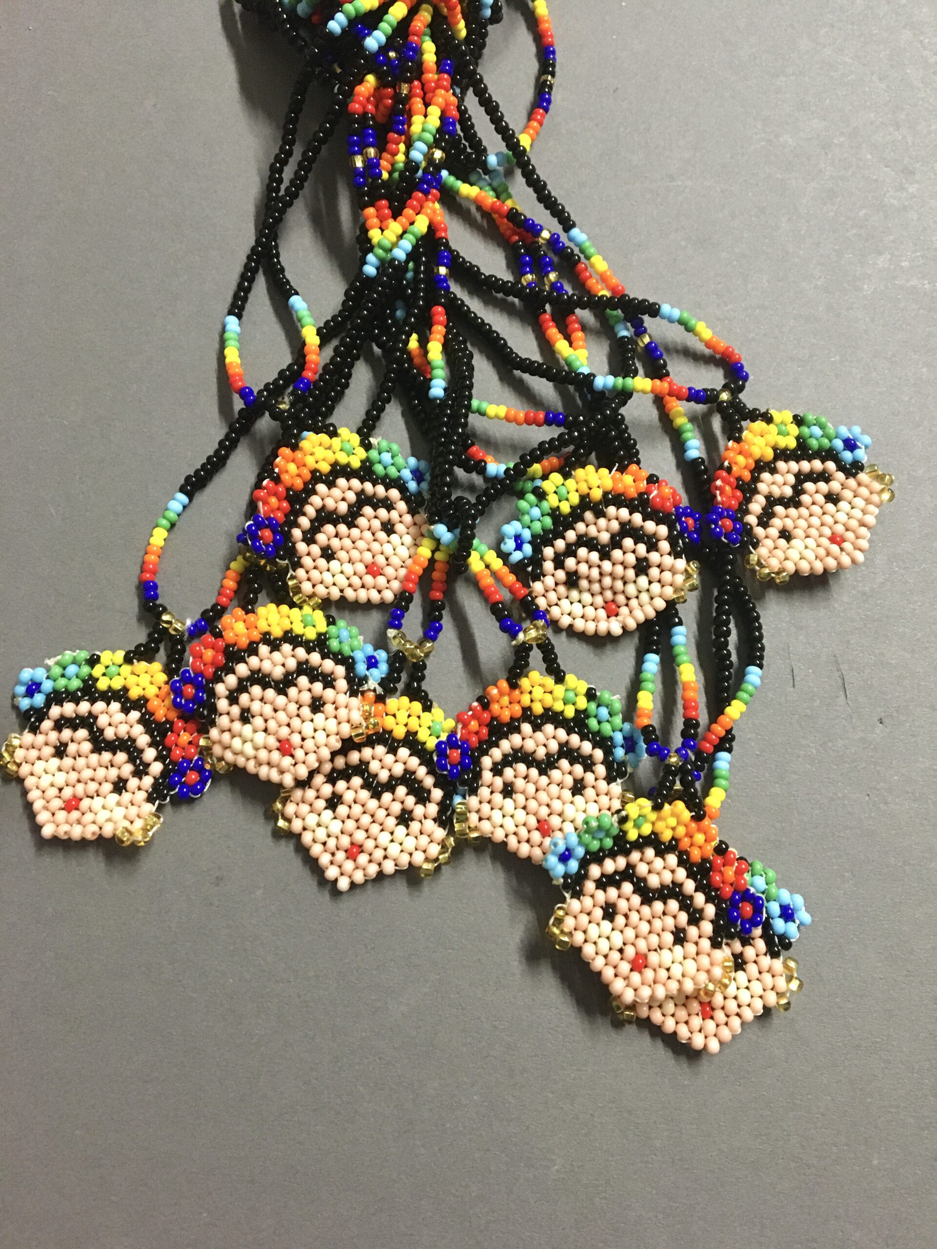 L’arte della chaquira è antichissima e si tramanda di generazione in generazione a creare vere e proprie opere d’arte. Tecnica di lavorazione: le chaquiras multicolori (perline di vetro) vengono intrecciate una ad una fino a completare i disegni degli accessori; Nella sua elaborazione l’artista Huichol sviluppa forme e disegni con simboli rappresentativi della sua cultura e tradizione.