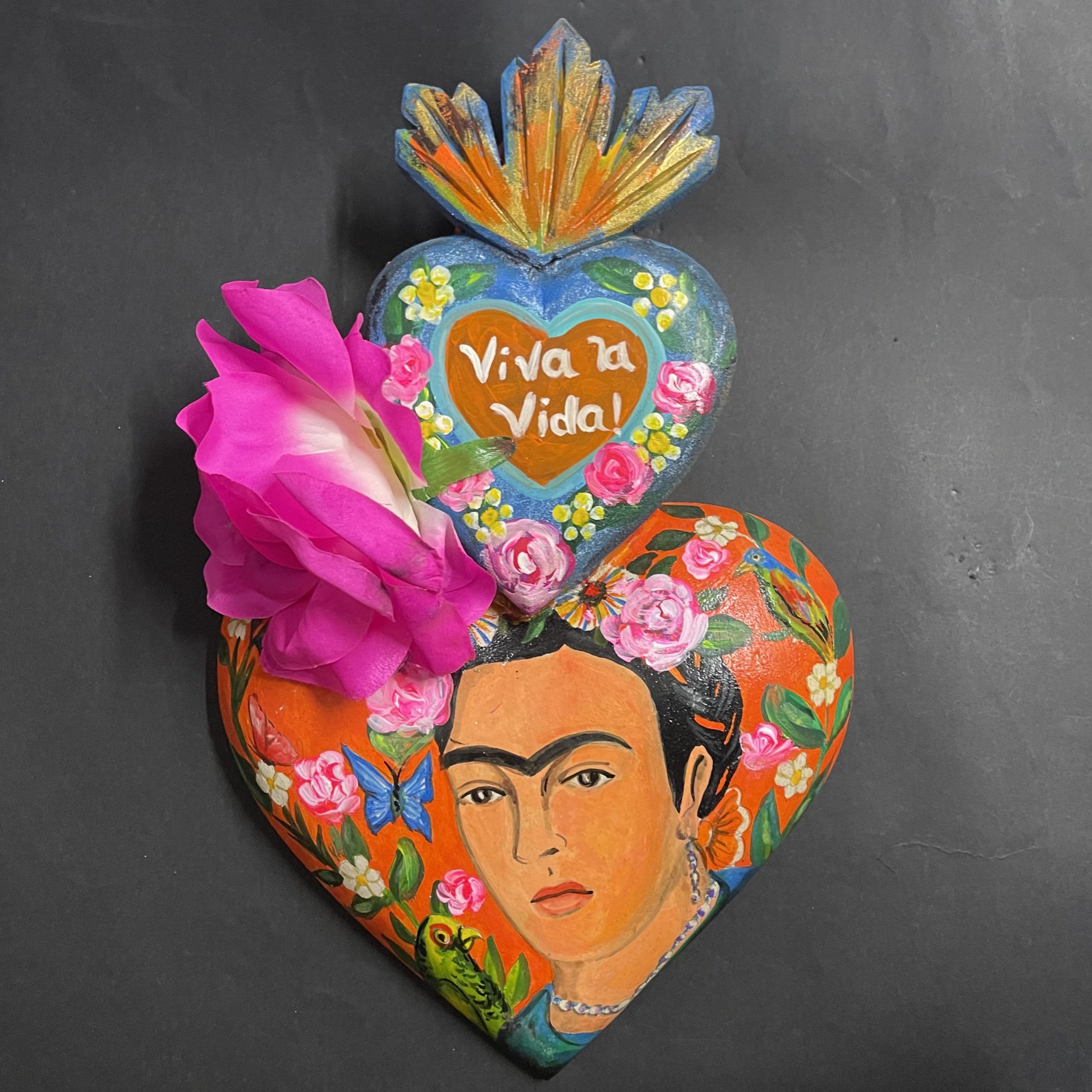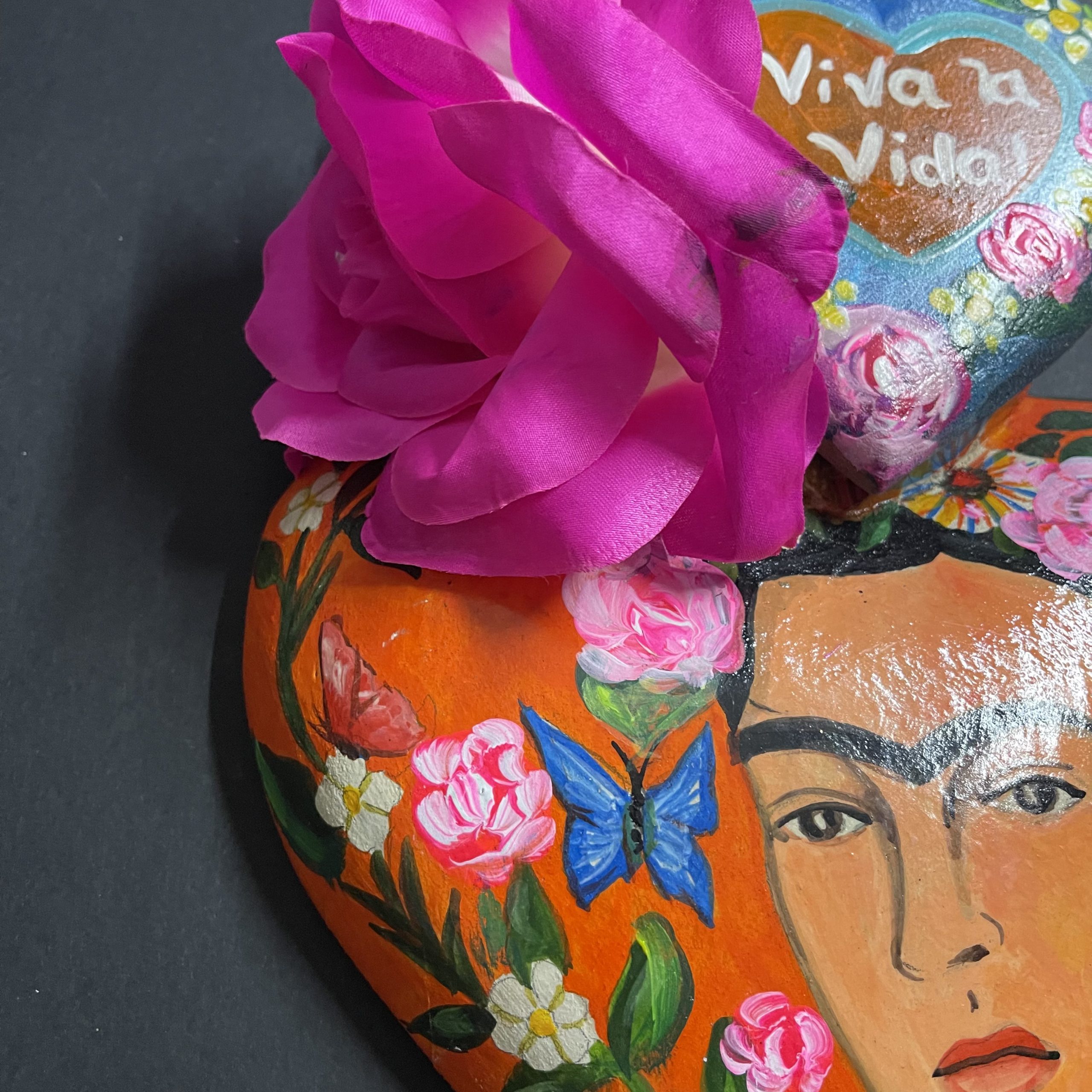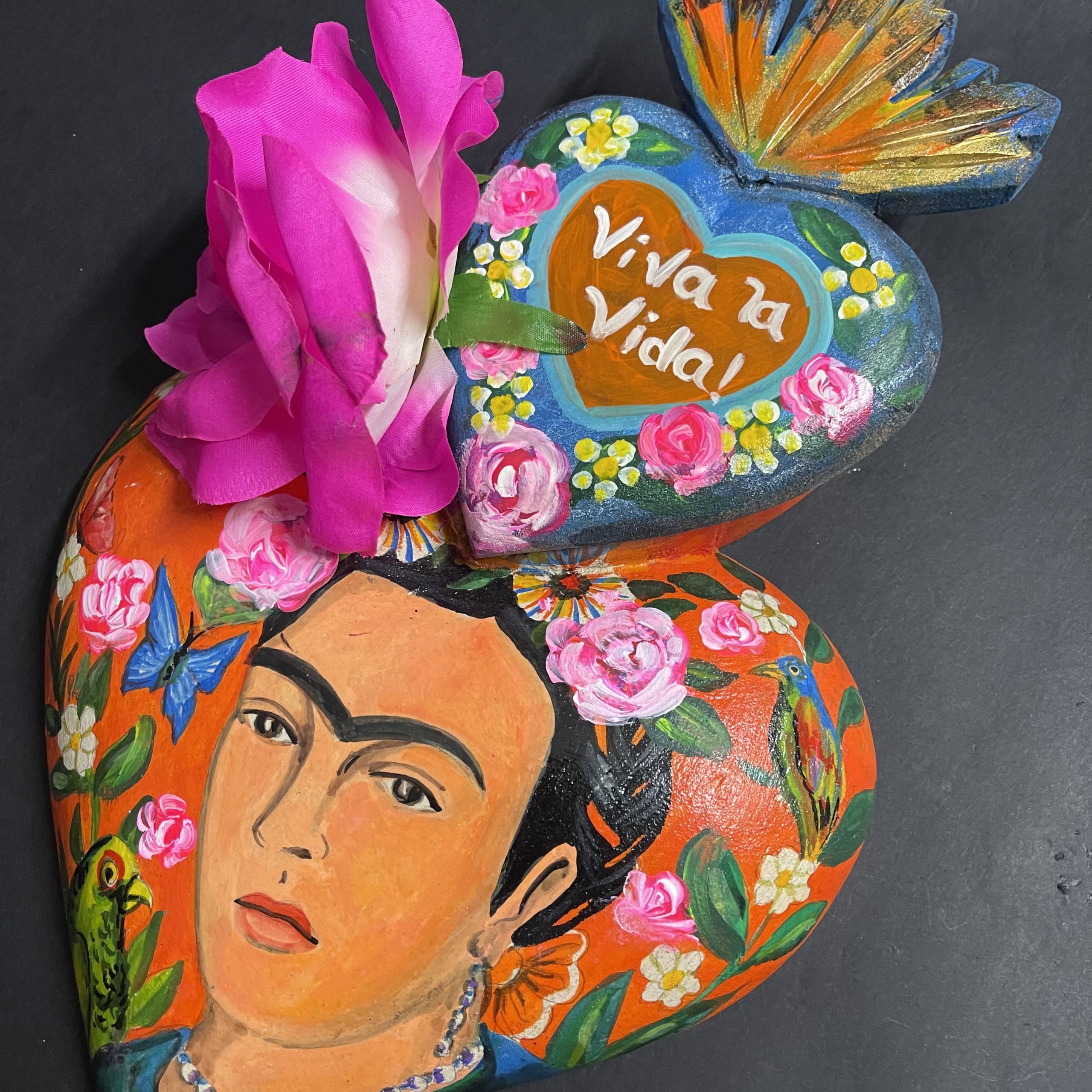 Corazon MAXI con Frase y Frida in Legno Dipinto