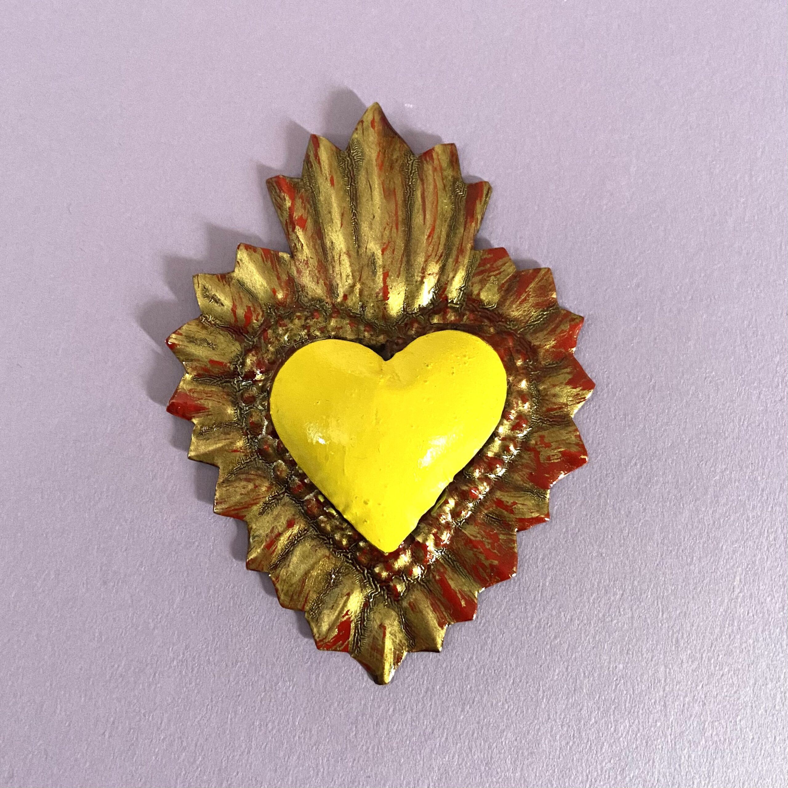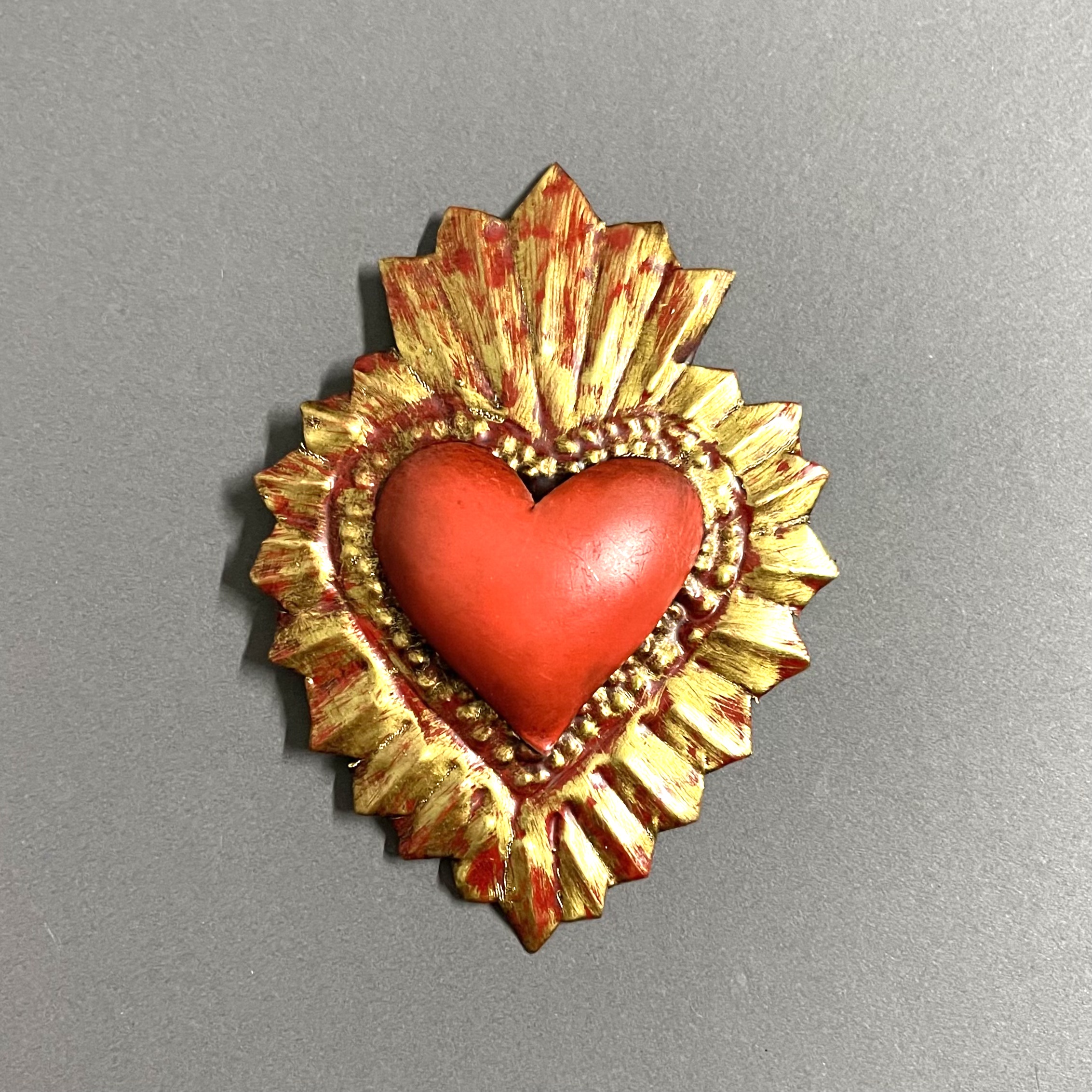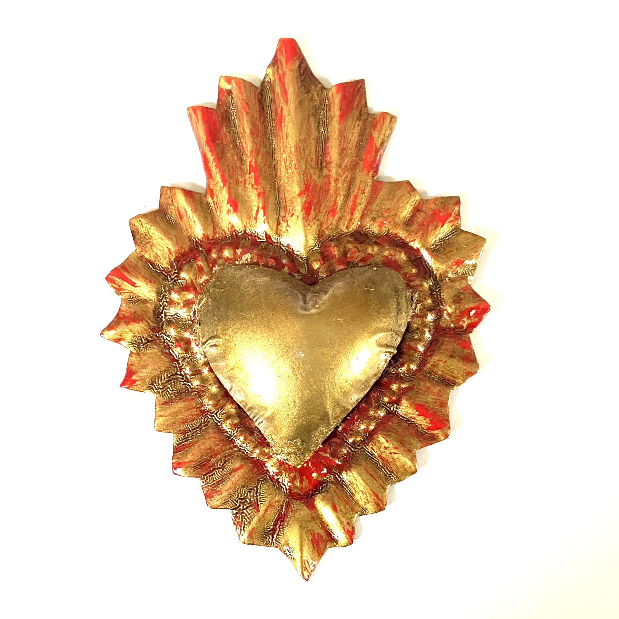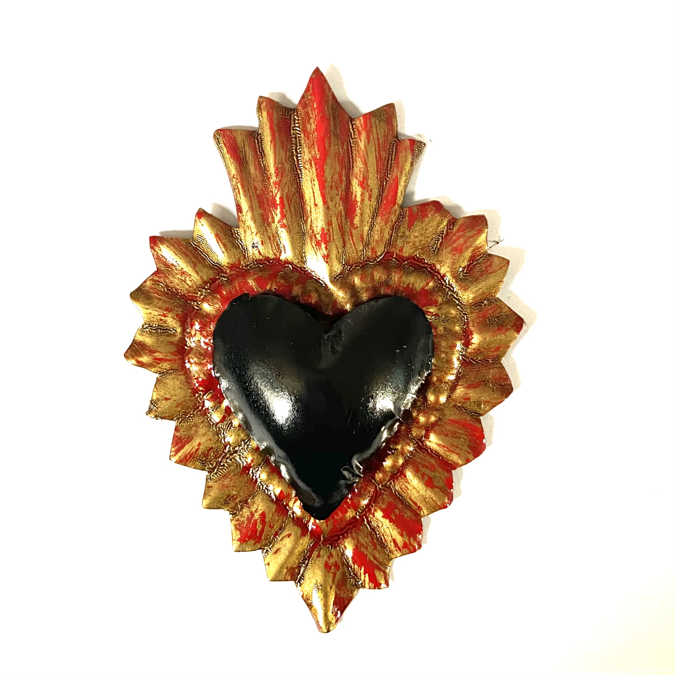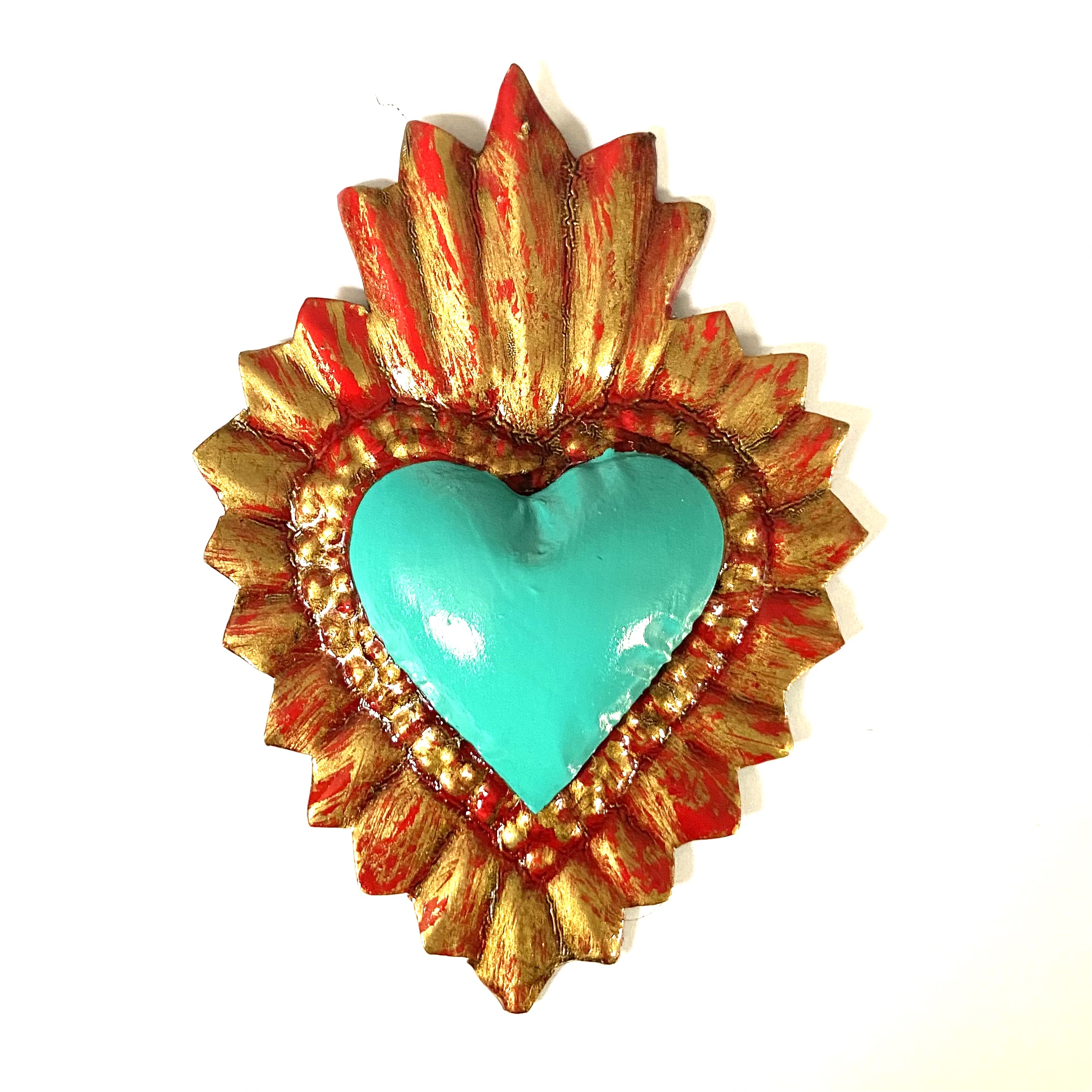 Decora la tua casa con un complemento d’arredo di artigianato messicano. Il cuore sacro è in metallo leggero e completamente realizzato a mano da artigiani della zona di Guanajuato. Questo complemento d’arredo può essere posizionato su una superficie piatta come un tavolino o una mensola oppure appeso al muro grazie al gancio posteriore.