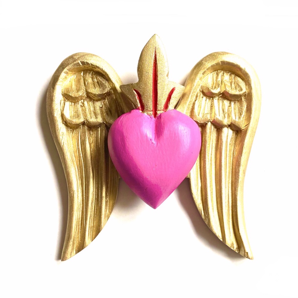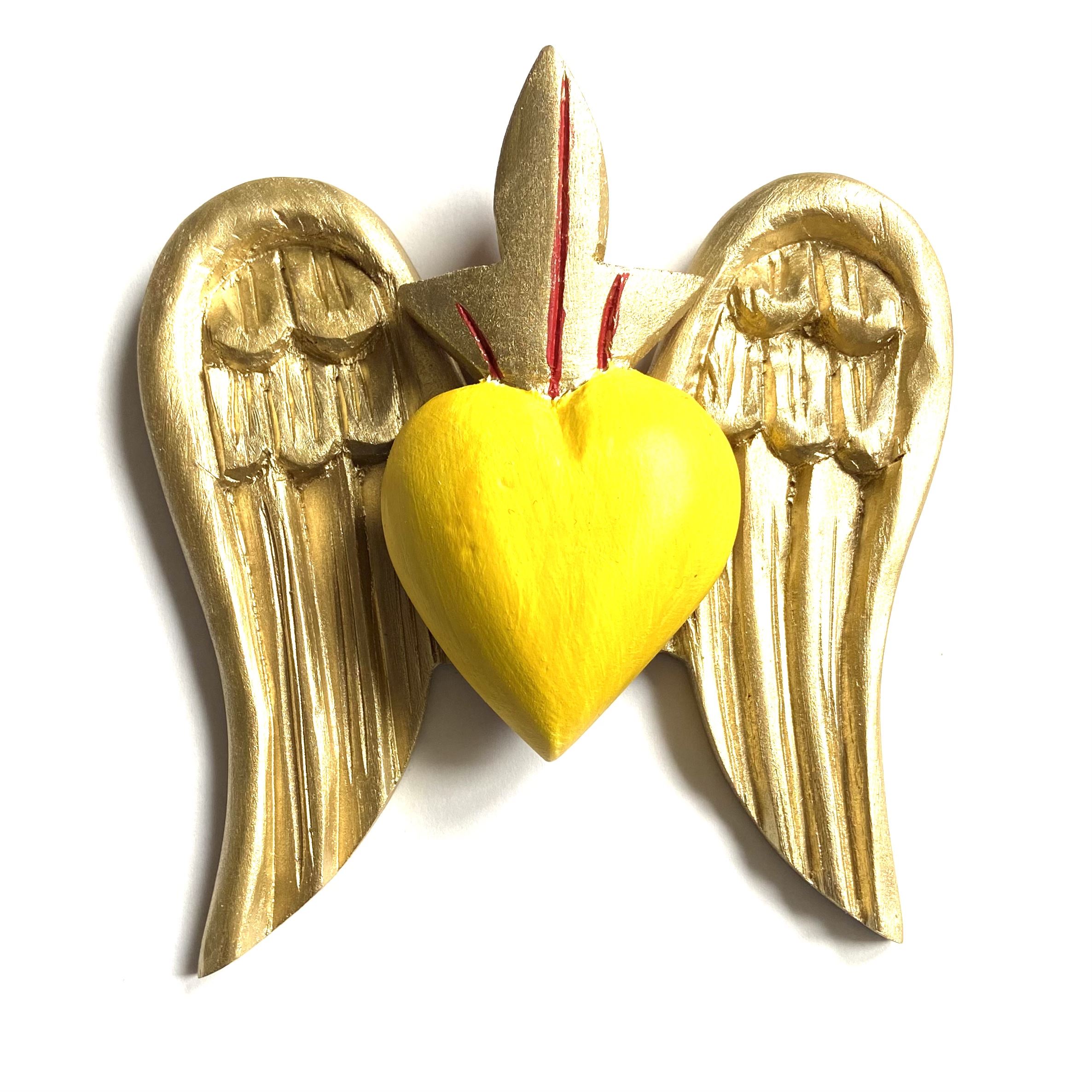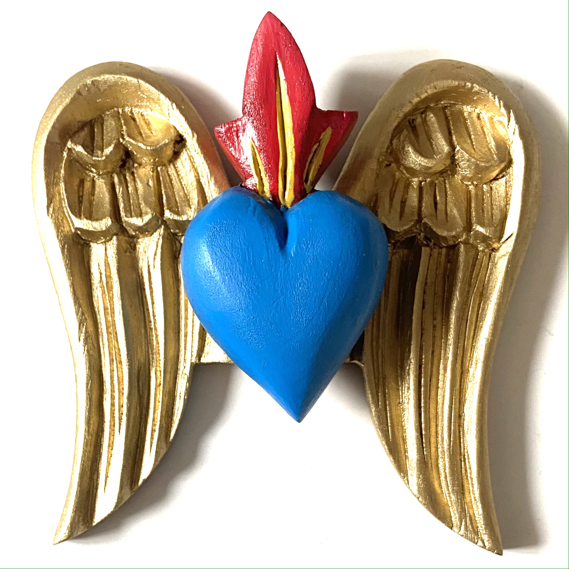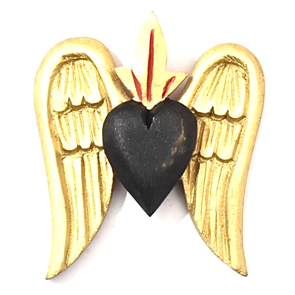 Il cuore con ali è un oggetto decorativo realizzato in legno proveniente della zona di Michoacán, è intagliato e dipinto a mano da esperti artigiani. Questo complemento d’arredo può essere posizionato su una superficie piatta come un tavolino o una mensola oppure appeso al muro grazie al gancio posteriore.