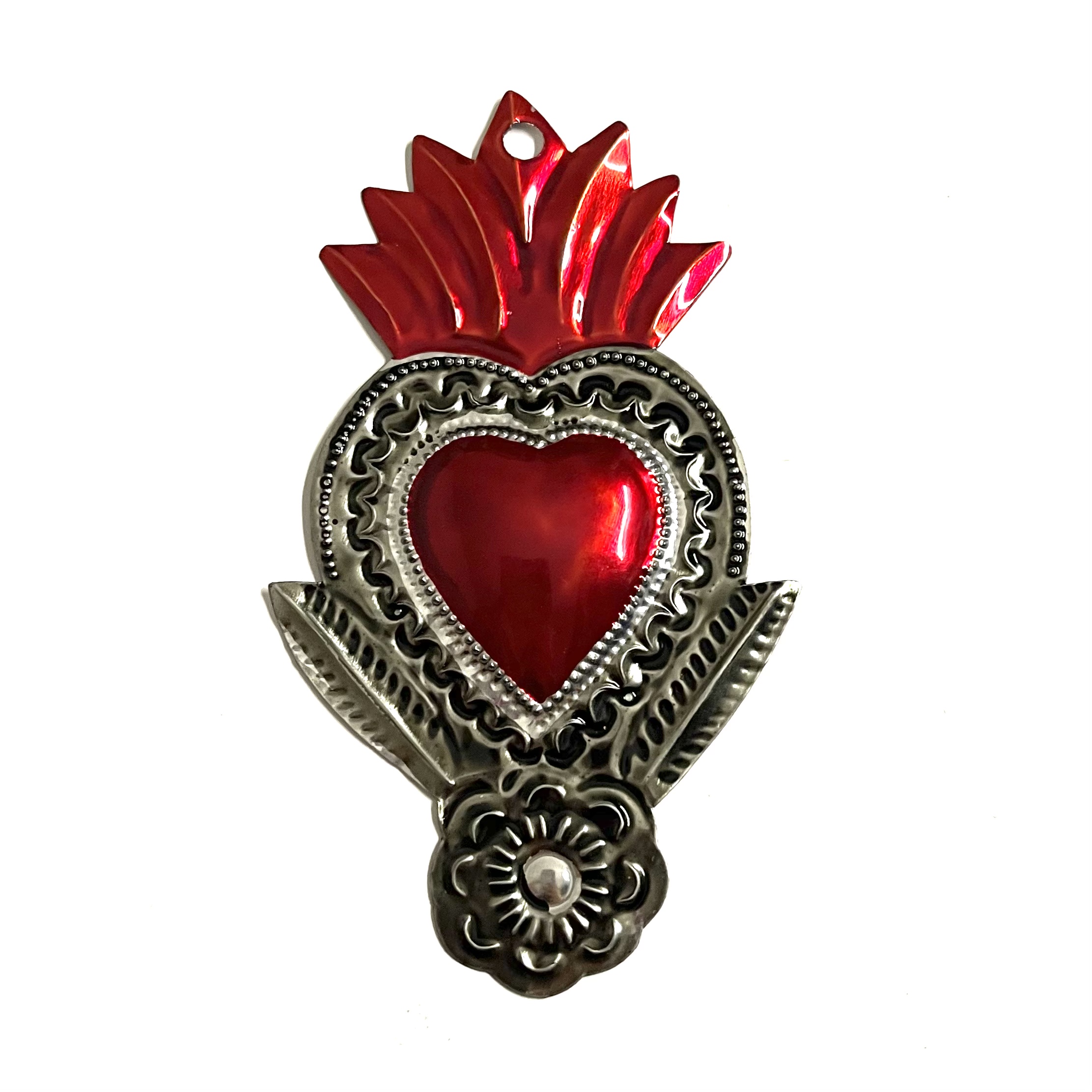 Decora la tua casa con un complemento d’arredo di artigianato messicano. Lo decorazione a forma di cuore è in latta riciclata e completamente realizzato a mano da artigiani della zona di Oaxaca.