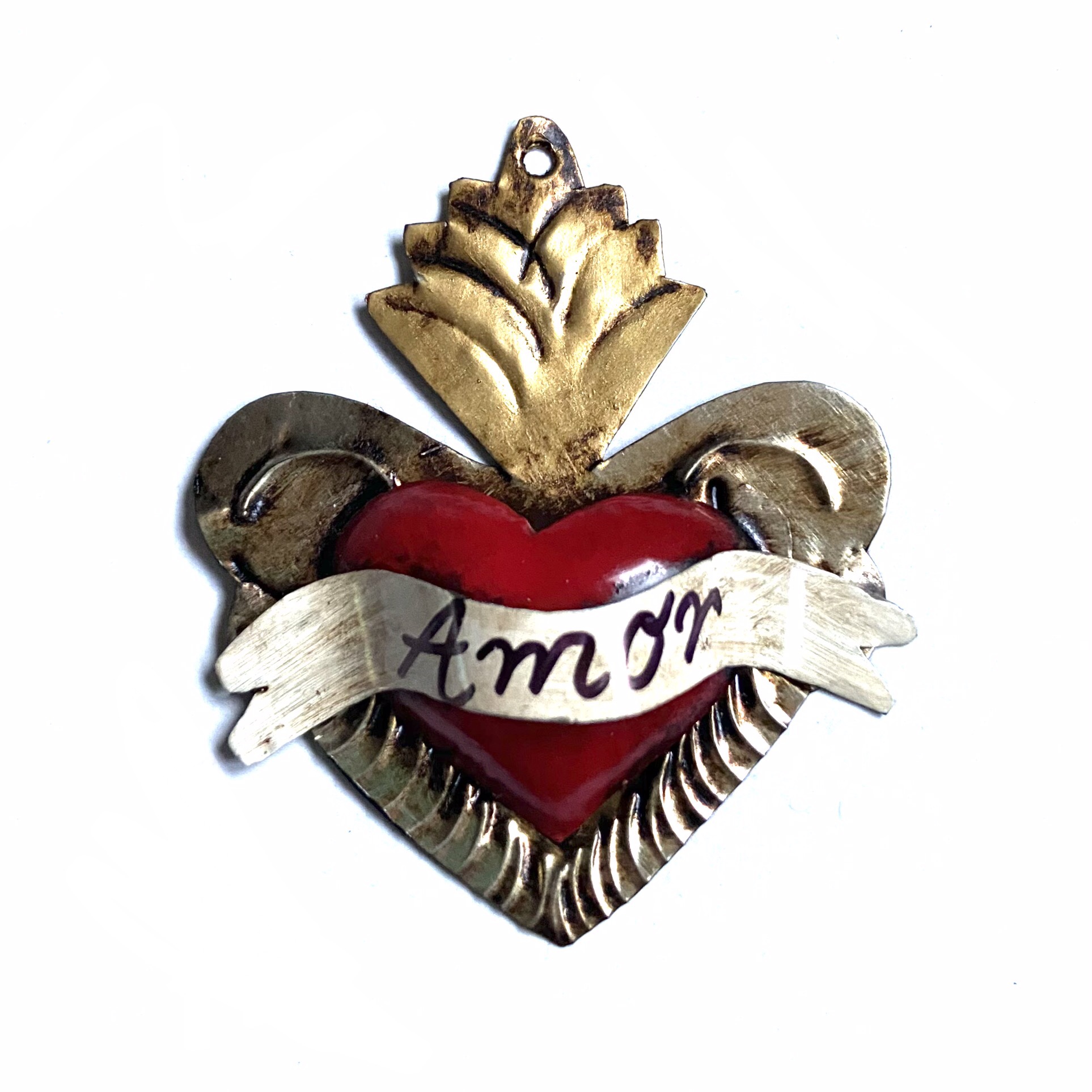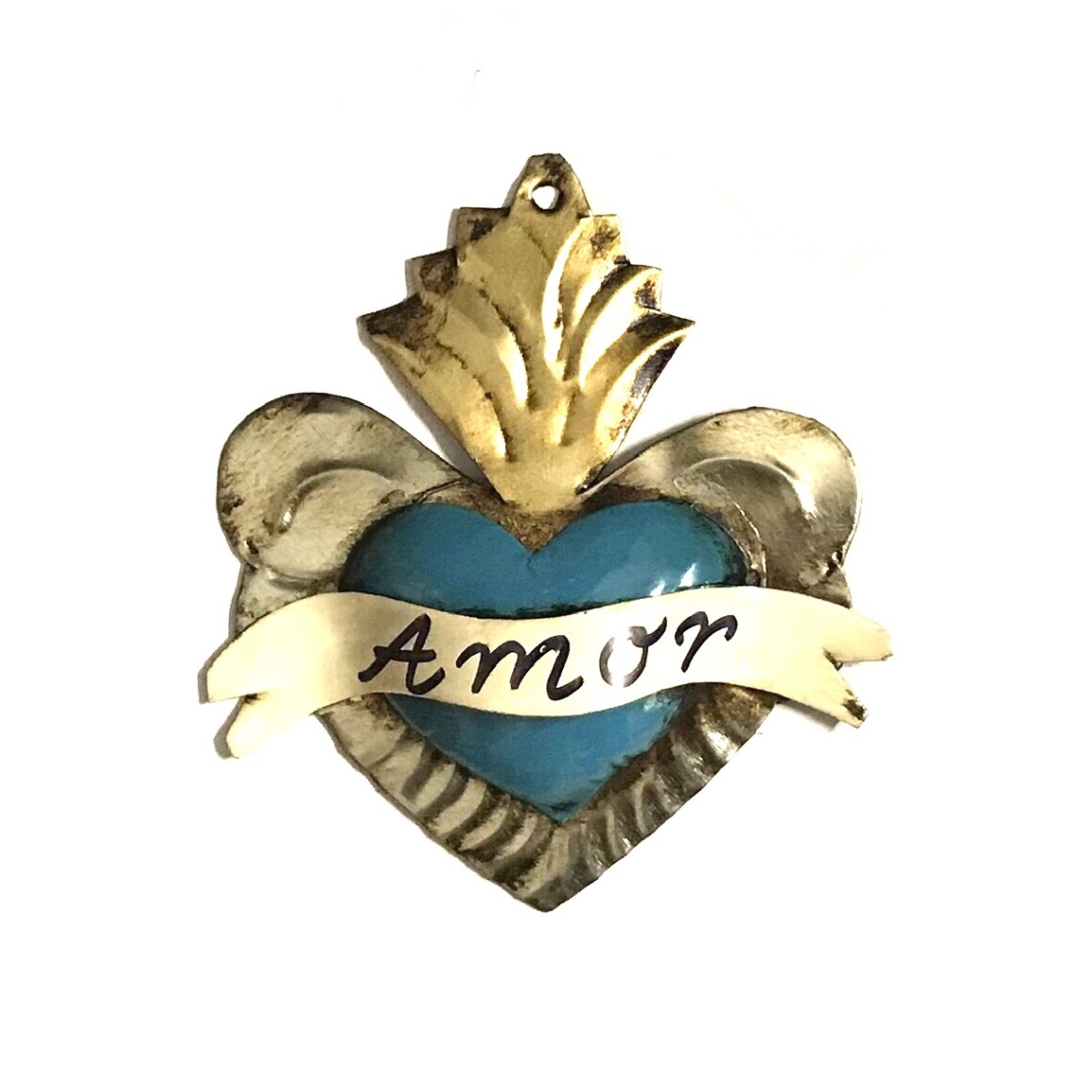 Decora la tua casa con un complemento d’arredo di artigianato messicano. Il cuore sacro è in metallo leggero e completamente realizzato a mano da artigiani della zona di Guanajuato. Questo complemento d’arredo può essere posizionato su una superficie piatta come un tavolino o una mensola oppure appeso al muro grazie al gancio posteriore.
