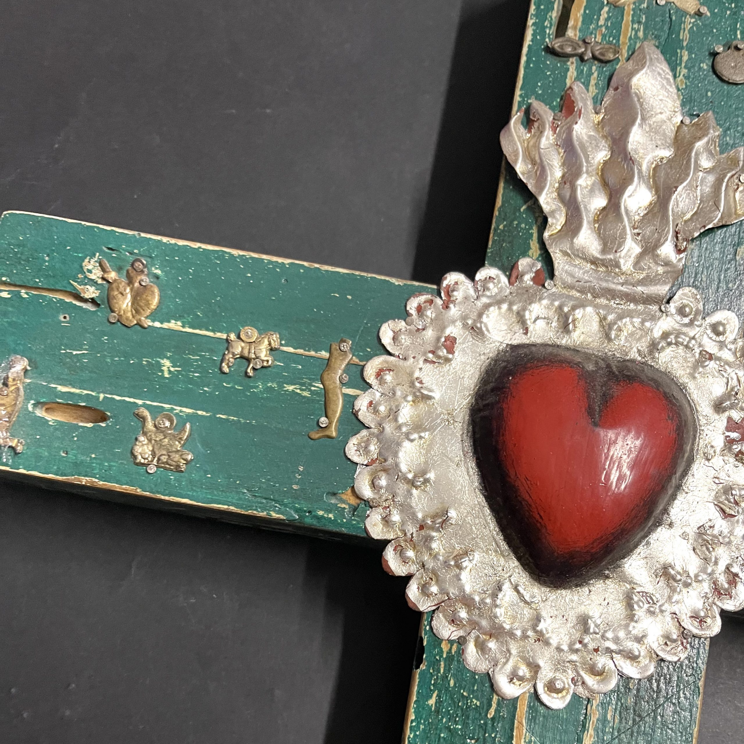 La croce è un oggetto decorativo realizzato in legno proveniente della zona di Michoacán. I miracoli sono simili a quelli italiani conosciuti come ex voto, che appunto, vengono offerti alle divinità per grazia ricevuta o in adempimento di una promessa. La croce è intagliata e dipinto a mano inoltre i miracoli in metallo sono posizionati uno a uno da esperti artigiani Questo complemento d’arredo può essere posizionato su una superficie piatta come un tavolino o una mensola oppure appeso al muro grazie al gancio posteriore.