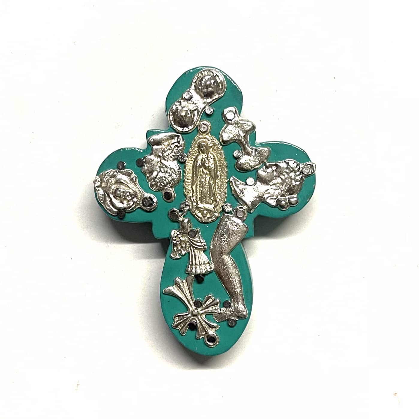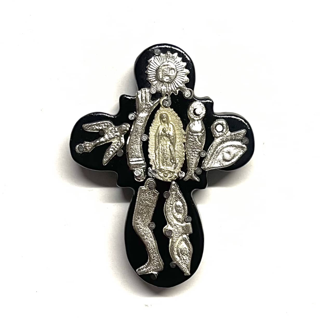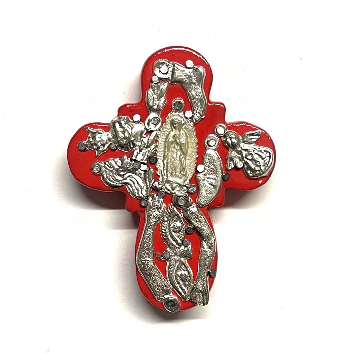 La croce è un oggetto decorativo realizzato in legno proveniente della zona di Michoacán. I miracoli sono simili a quelli italiani conosciuti come ex voto, che appunto, vengono offerti alle divinità per grazia ricevuta o in adempimento di una promessa. La croce è intagliata e dipinto a mano inoltre i miracoli in metallo sono posizionati uno a uno da esperti artigiani Questo complemento d’arredo può essere posizionato su una superficie piatta come un tavolino o una mensola oppure appeso al muro grazie al gancio posteriore.