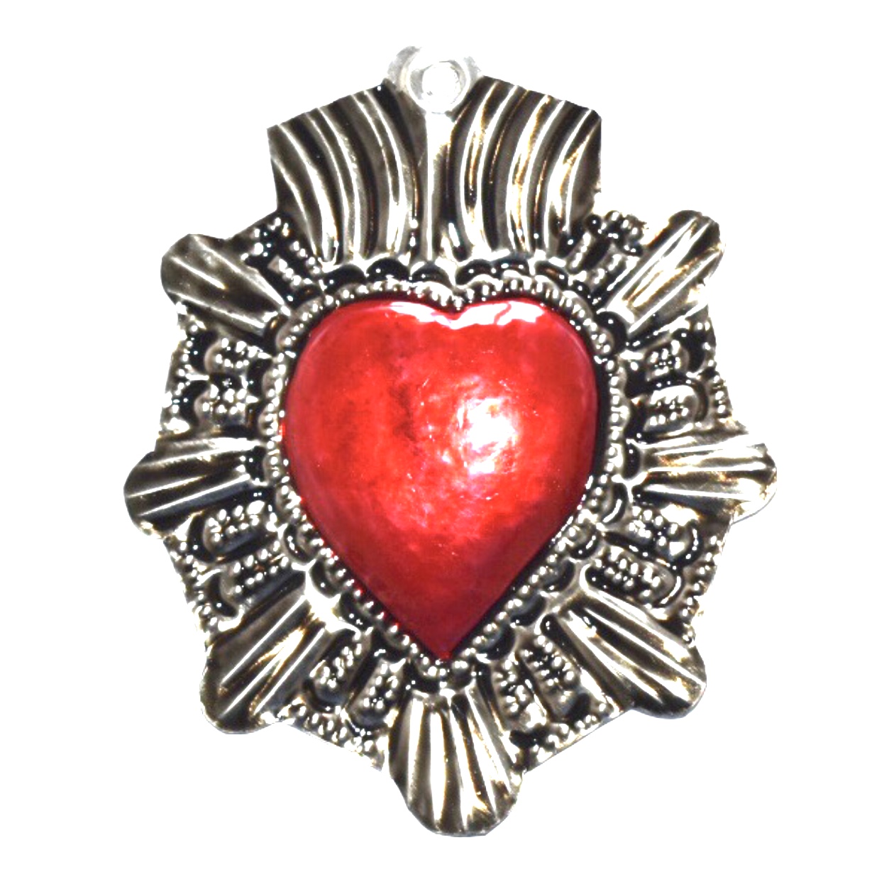 Decora la tua casa con un complemento d’arredo di artigianato messicano. Lo decorazione a forma di cuore è in latta riciclata e completamente realizzato a mano da artigiani della zona di Oaxaca.