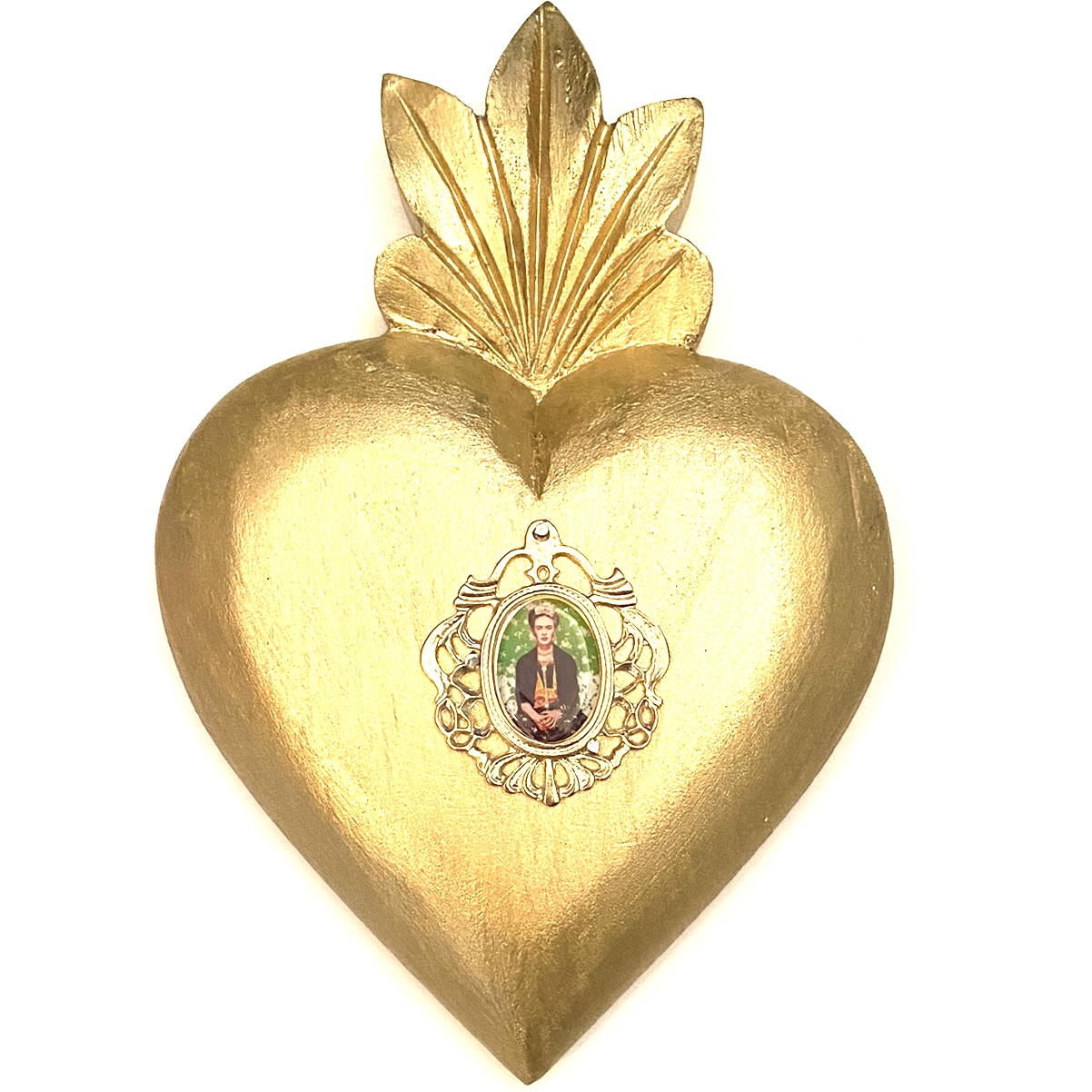 Il Sacro cuore con miracoli è un oggetto decorativo realizzato in legno proveniente della zona di Michoacán. Questi oggetti sono simili a quelli italiani conosciuti come ex voto, che appunto, vengono offerti alle divinità per grazia ricevuta o in adempimento di una promessa. Il sacro cuore è intagliato e dipinto a mano inoltre i miracoli in metallo sono posizionati uno a uno da esperti artigiani. Questo complemento d’arredo può essere posizionato su una superficie piatta come un tavolino o una mensola oppure appeso al muro grazie al gancio posteriore.