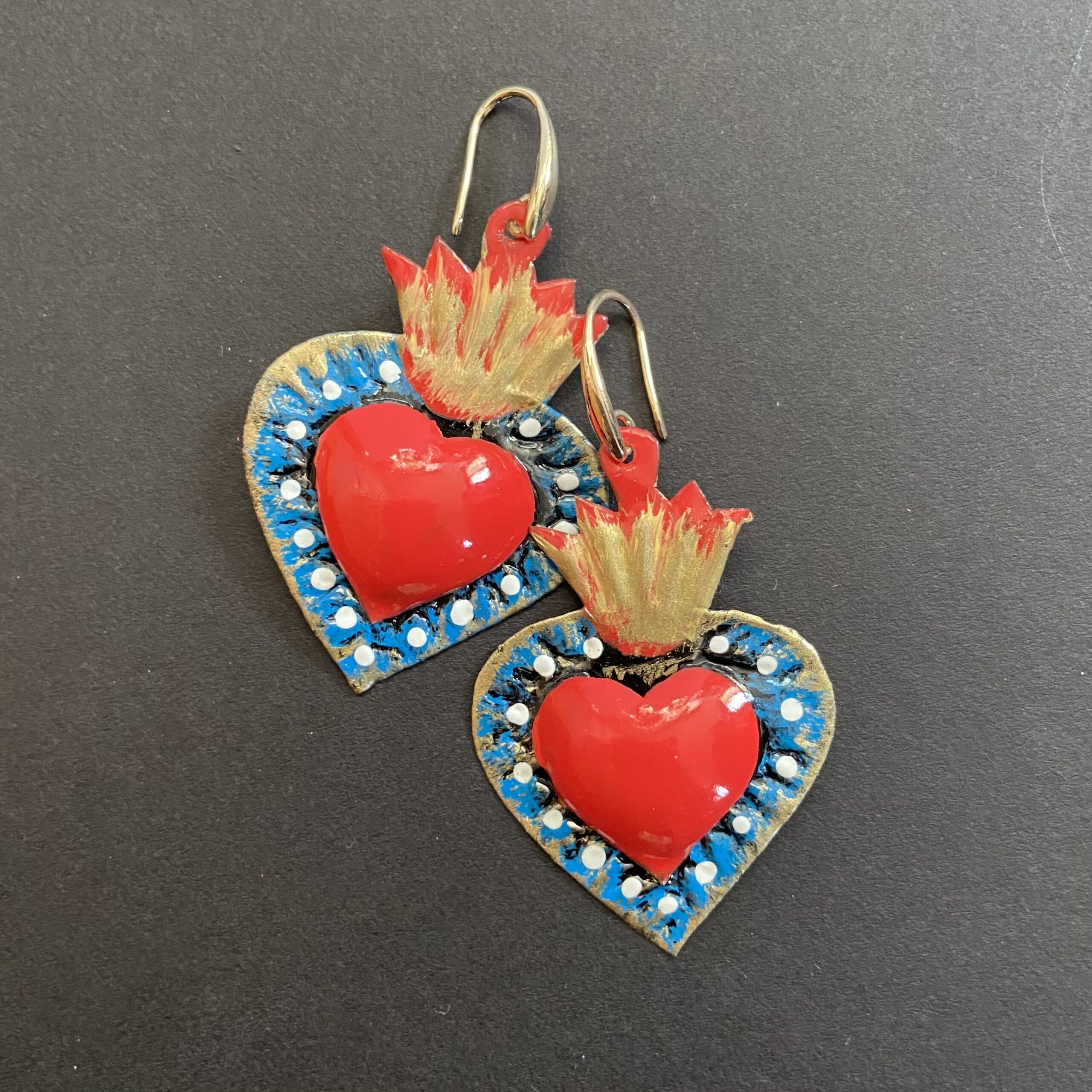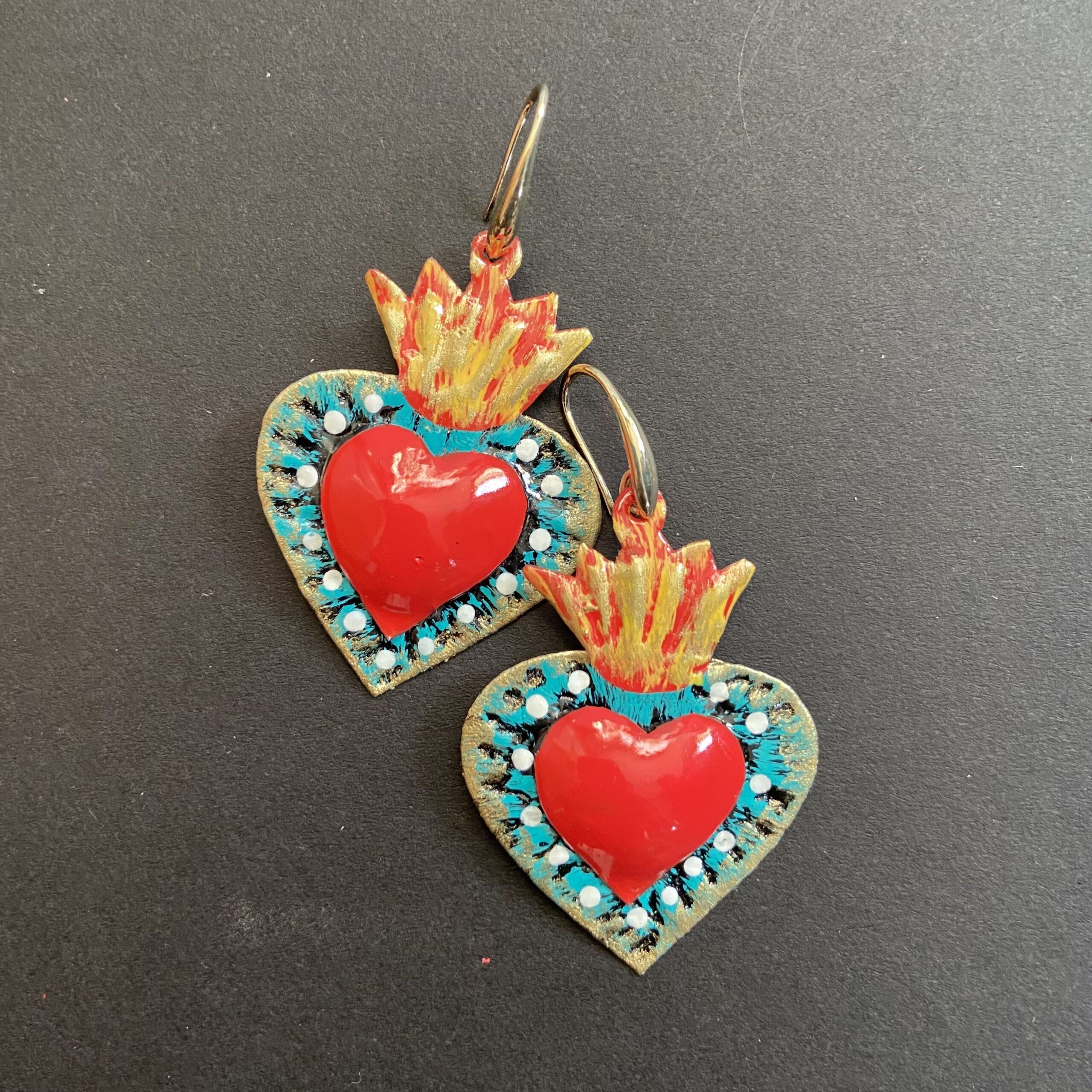 Orecchini cuore sacro in metallo leggero e completamente realizzati a mano da artigiani della zona di Guanajuato.