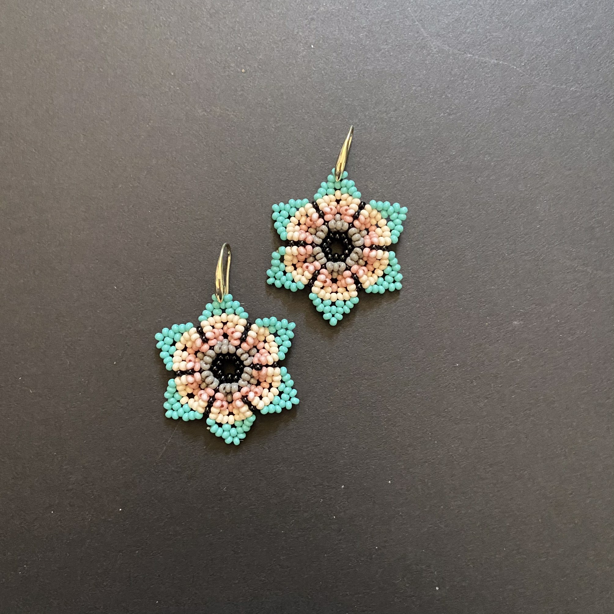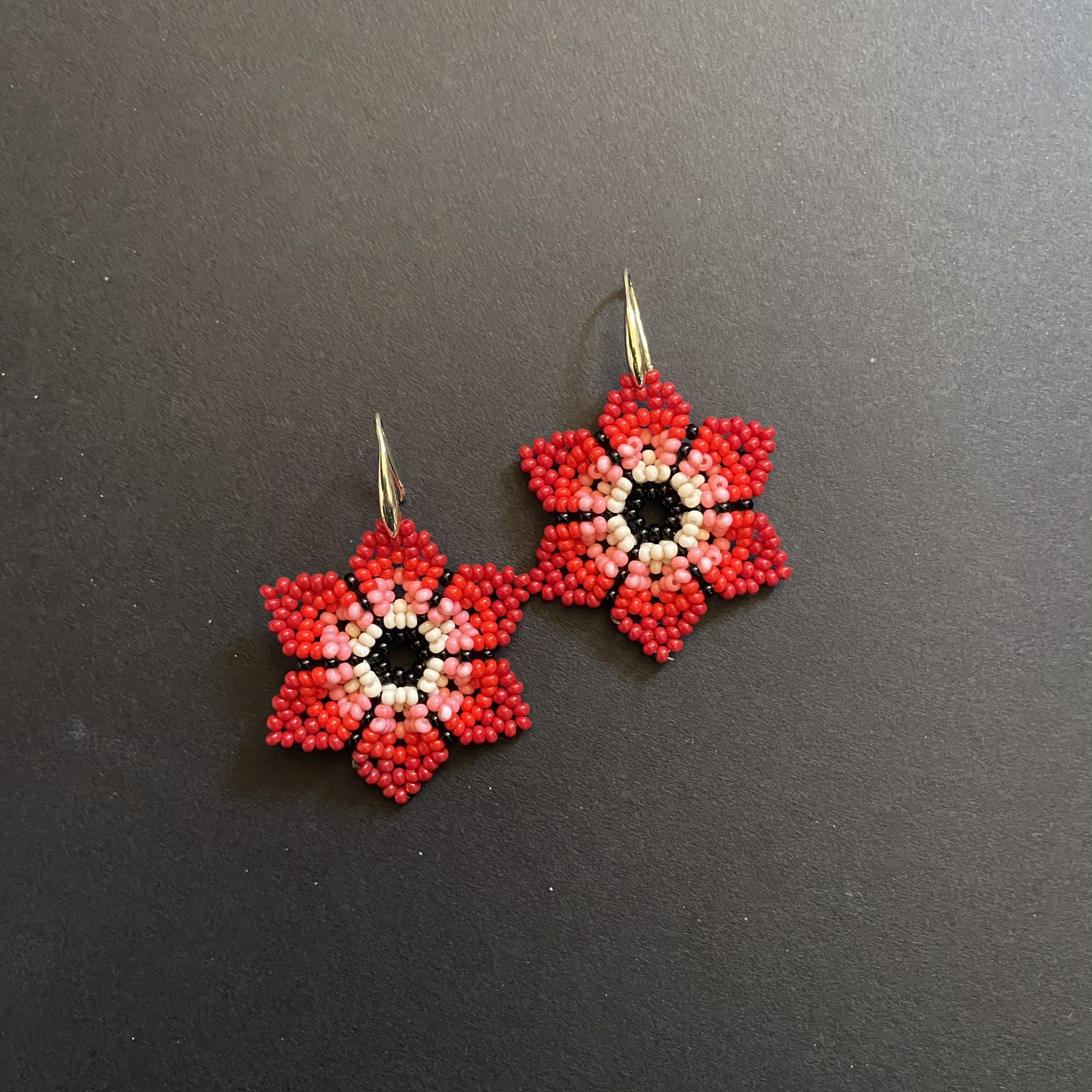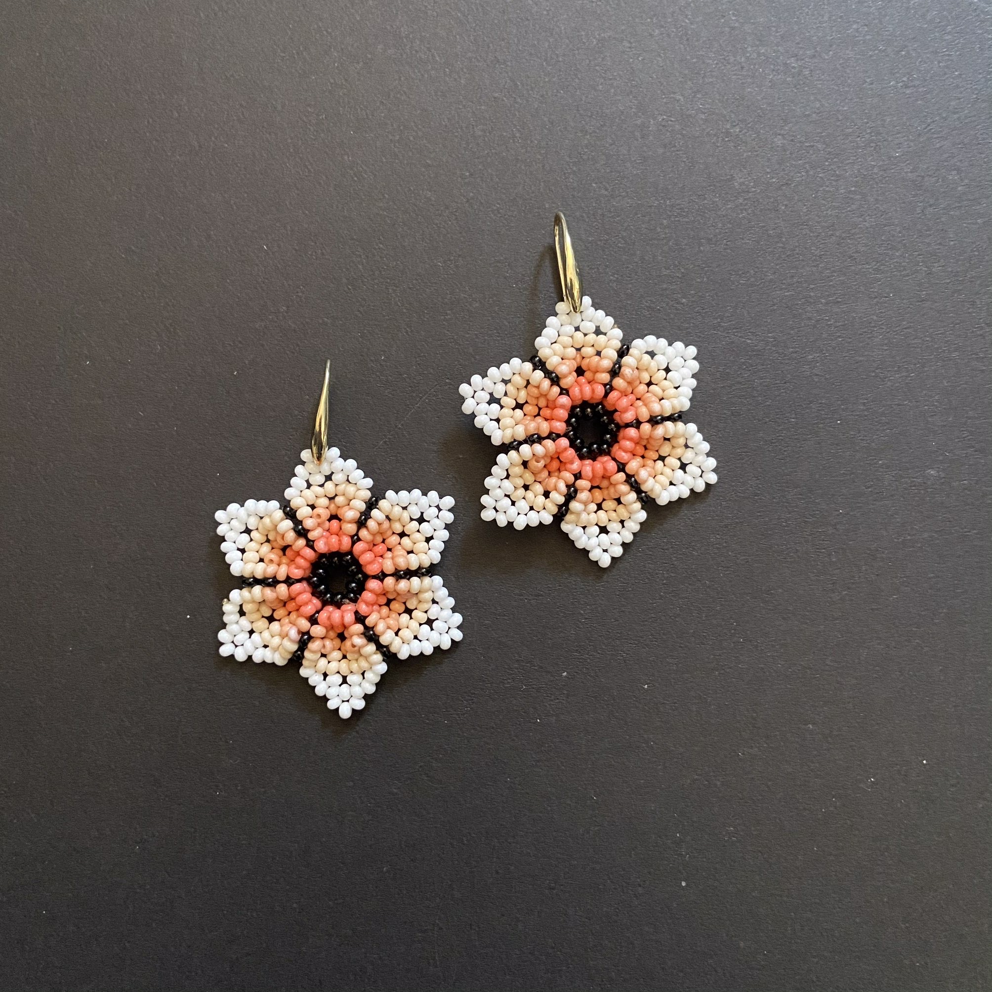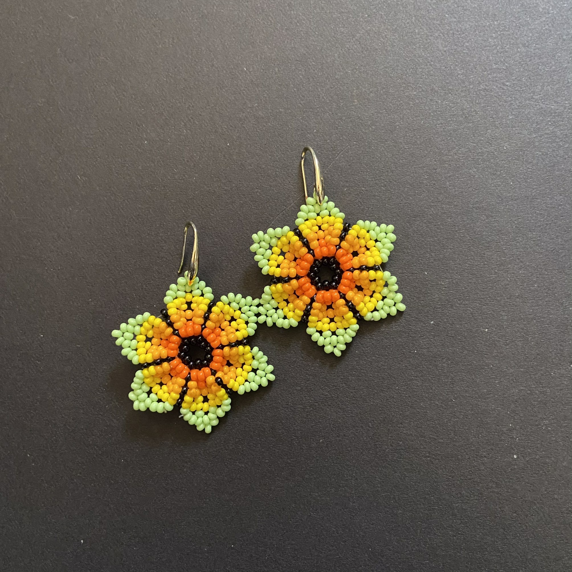 Orecchini Huichol, tecnica di lavorazione: le chaquiras multicolore (perline di vetro) vengono intrecciate una ad una fino a completare i disegni degli accessori; Nella sua elaborazione l’artista Huichol sviluppa forme e disegni con simboli rappresentativi della sua cultura e tradizione.