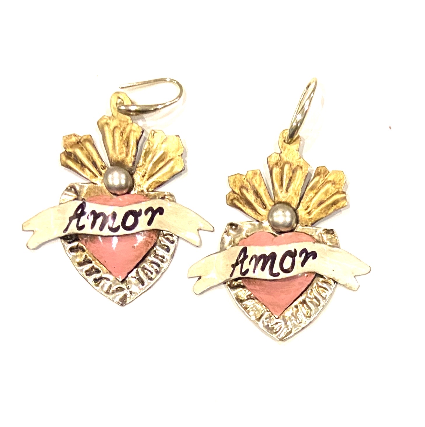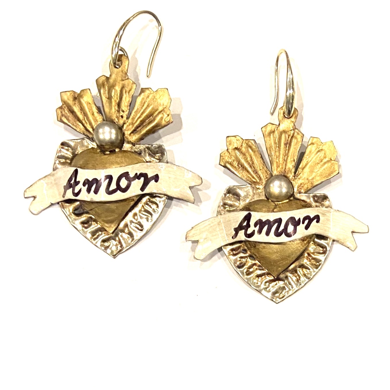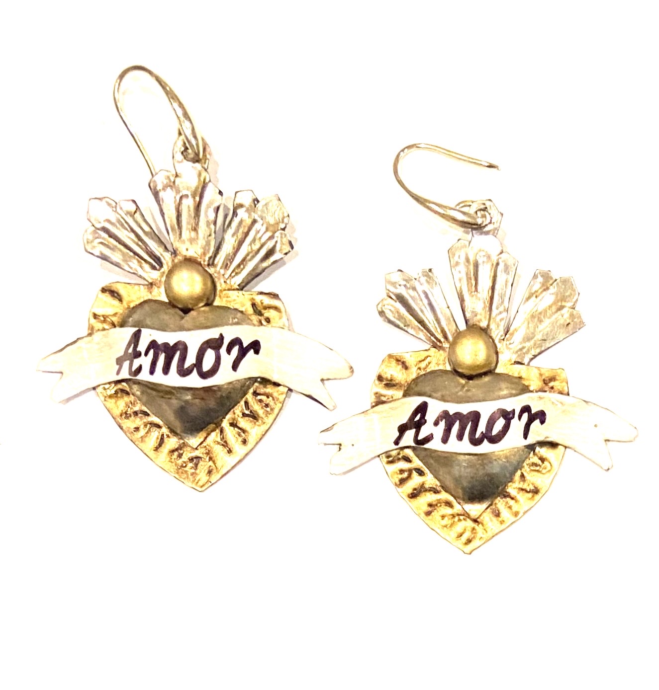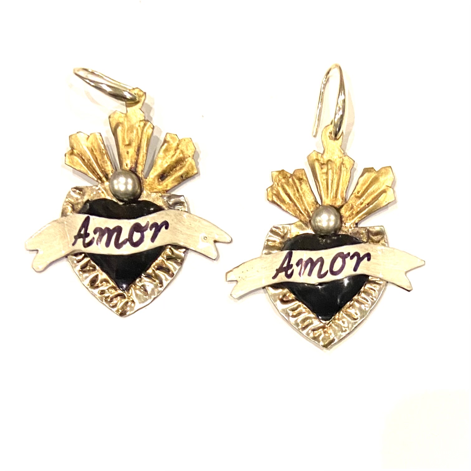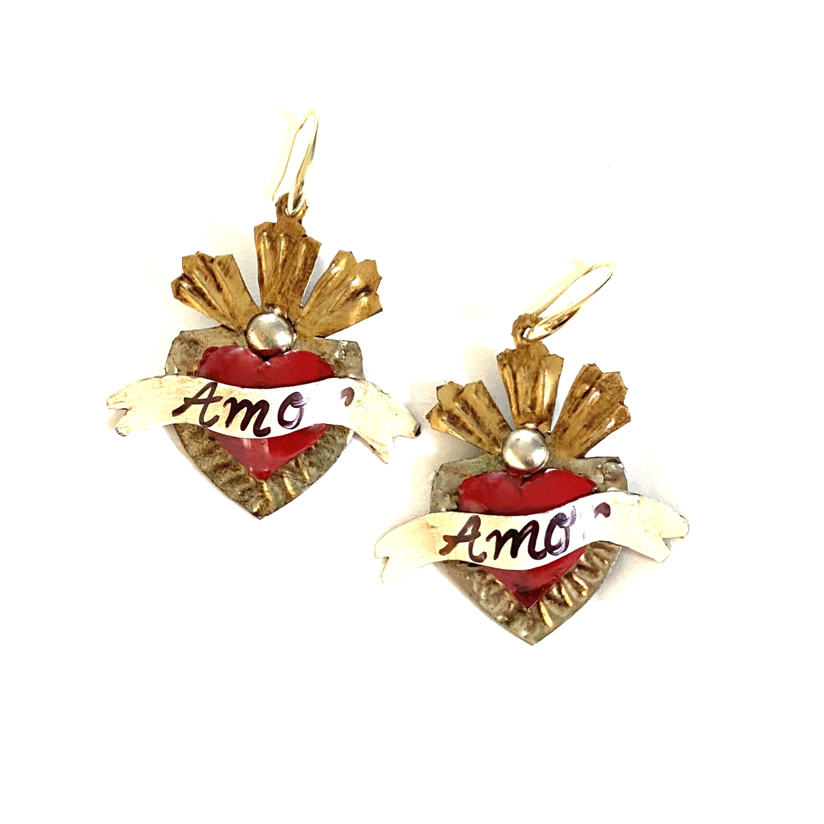 Orecchini cuore sacro in metallo leggero e completamente realizzati a mano da artigiani della zona di Guanajuato.