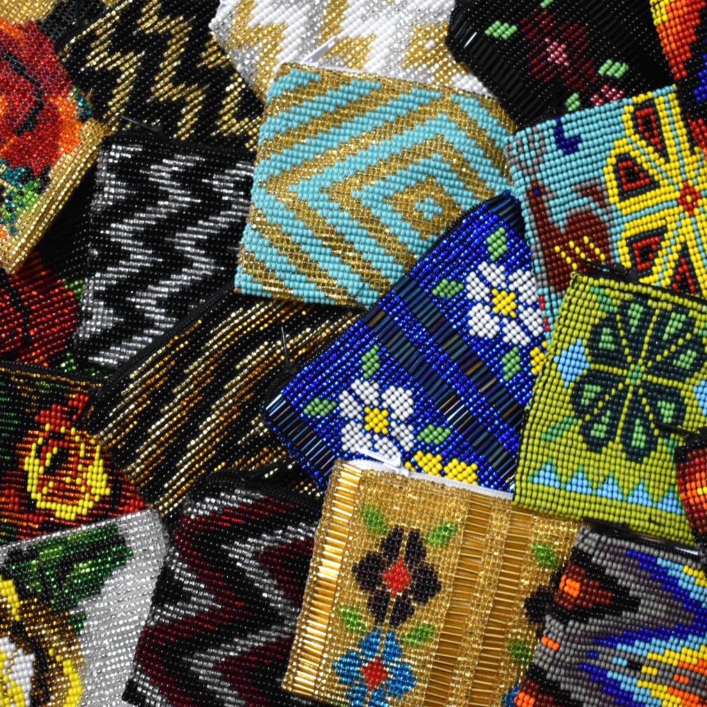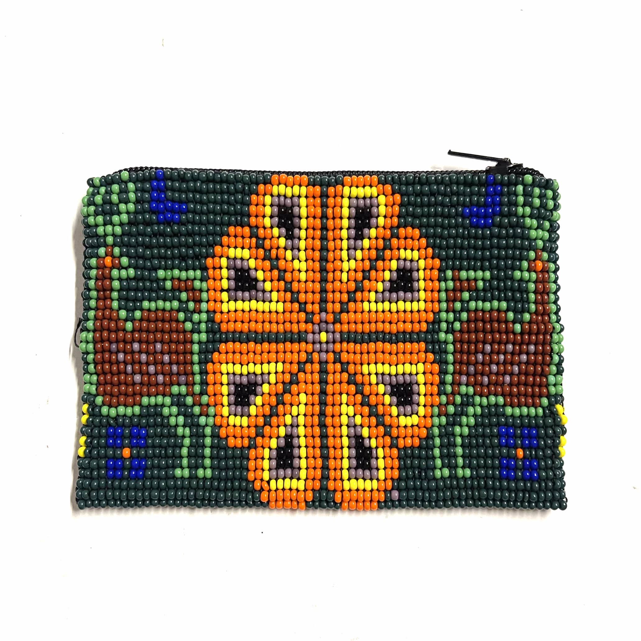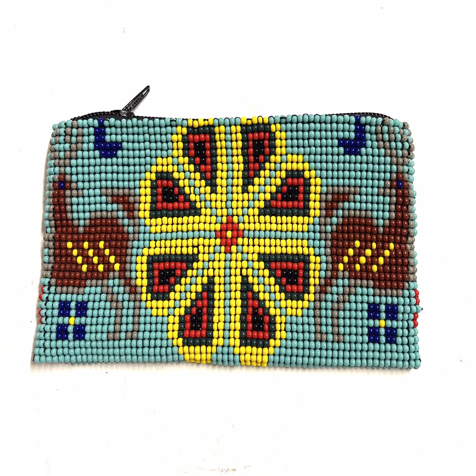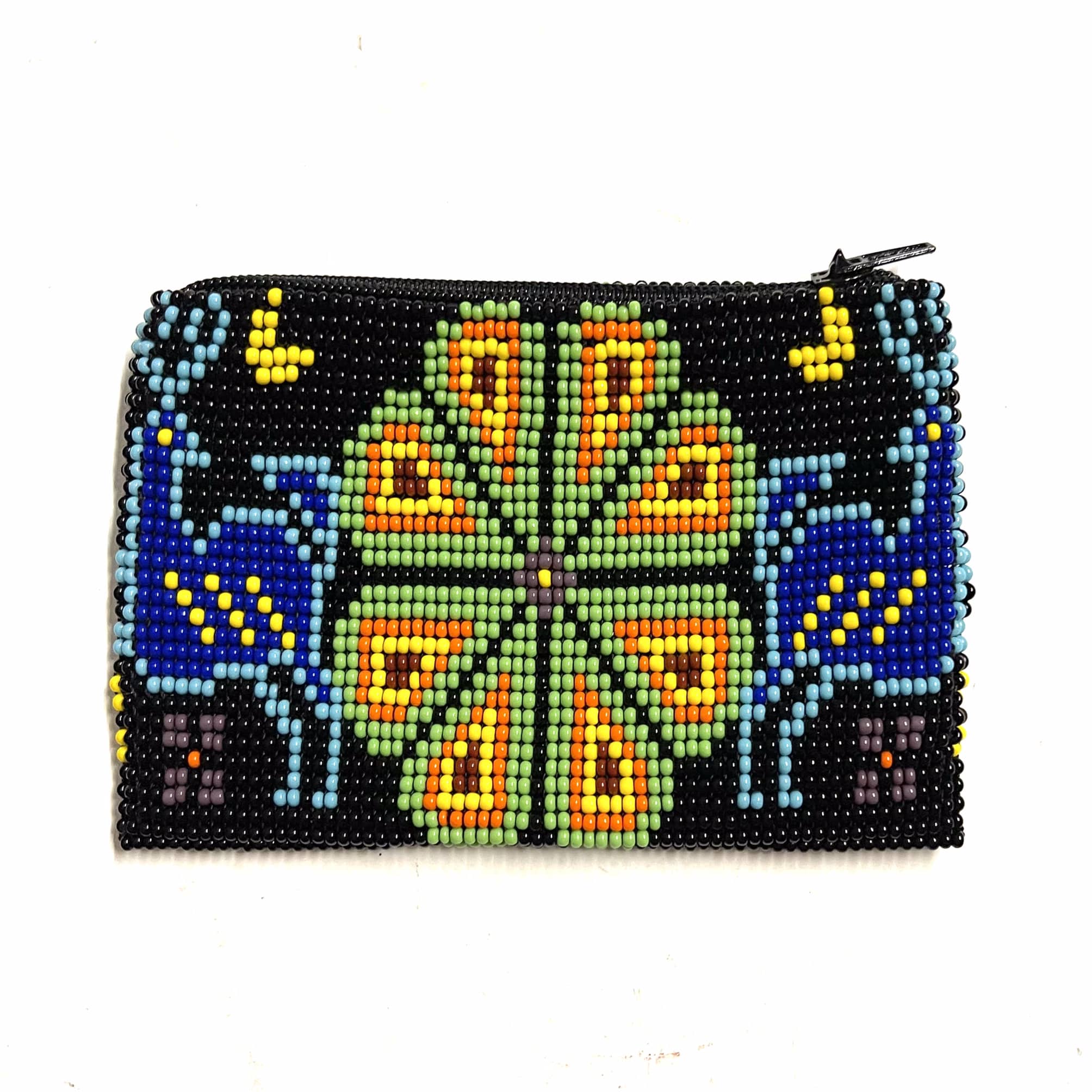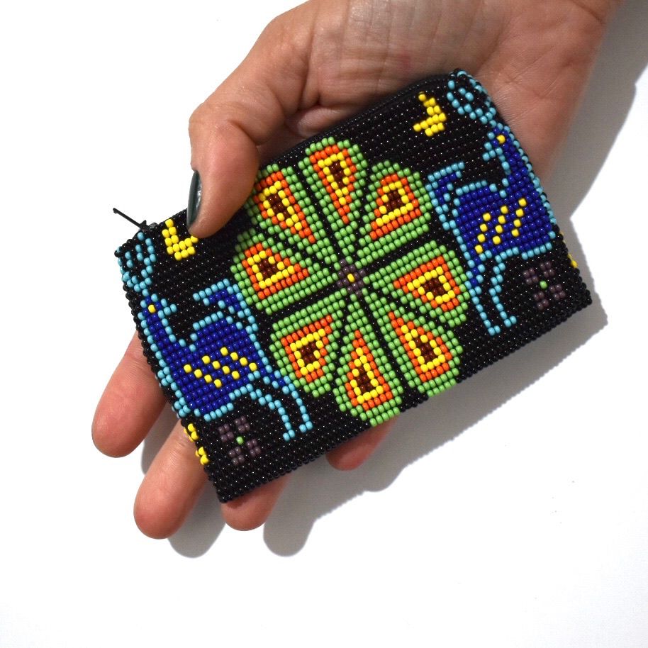 Portamonete realizzato da artigiani Huichol completamente a mano, ogni articolo è composto da centinaia di perline cucite assieme per formare tanti diversi disegni sempre ispirati alle loro tradizioni spirituali.