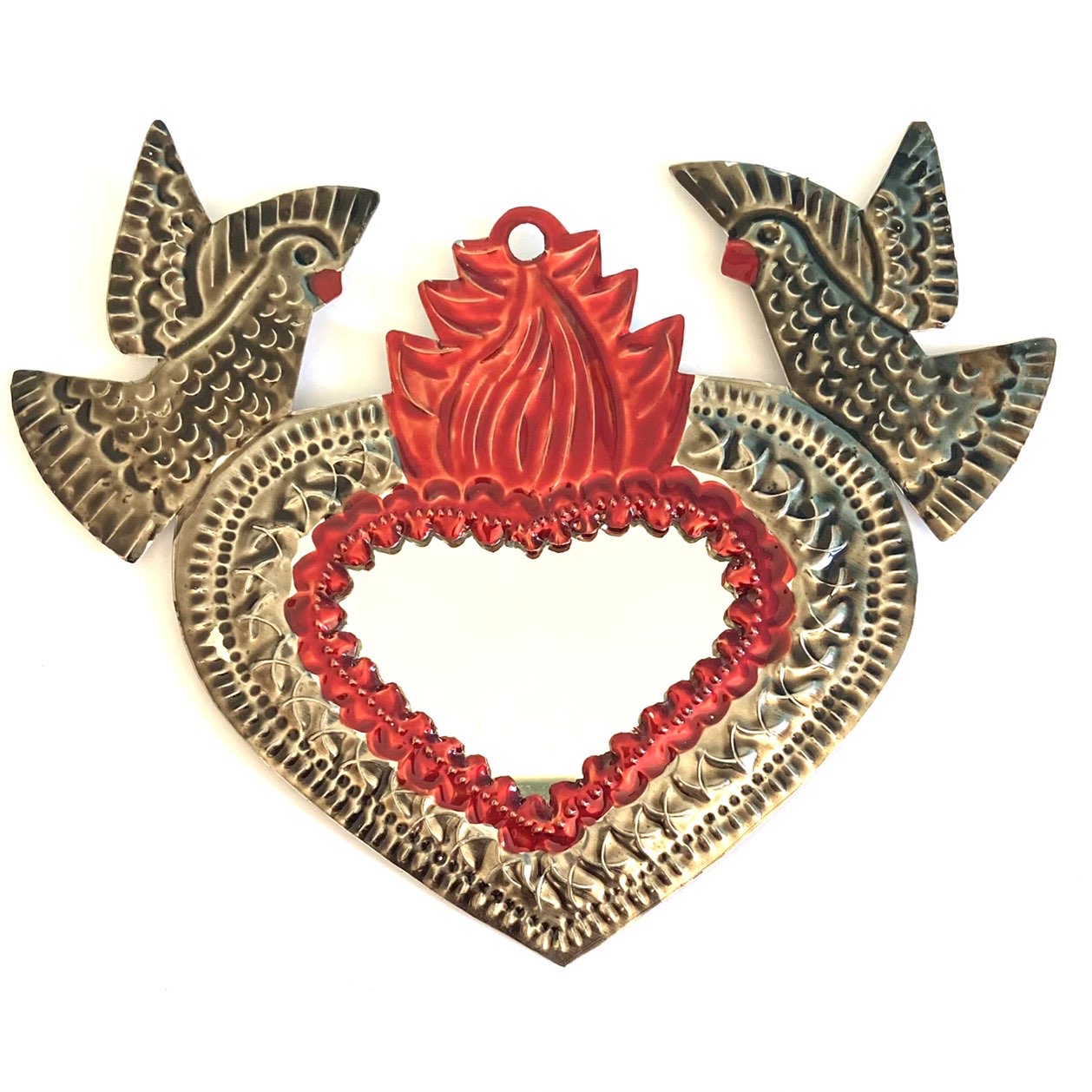 Decora la tua casa con un complemento d’arredo di artigianato messicano. Il cuore sacro è in latta riciclata e completamente realizzato a mano da artigiani della zona di Oaxaca.