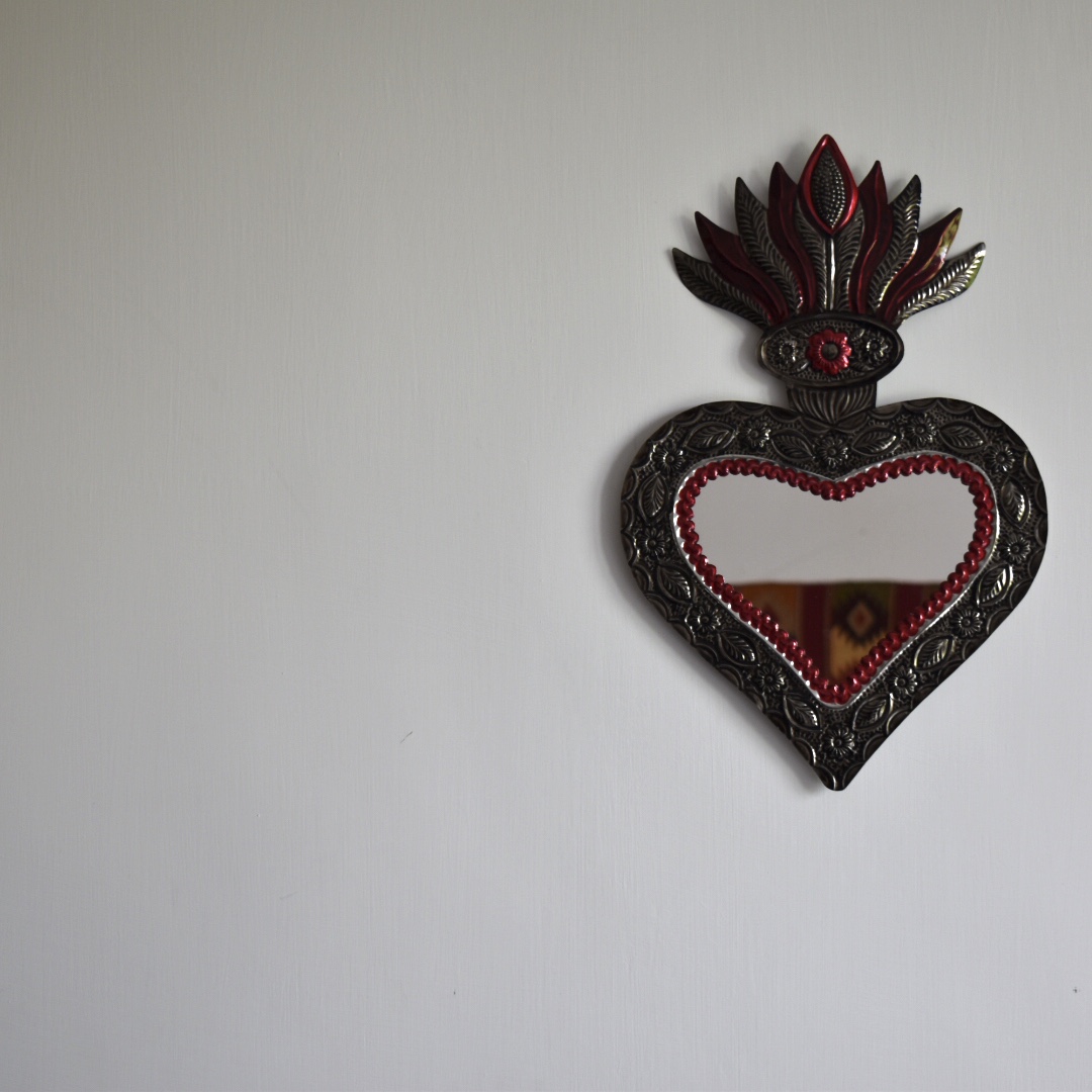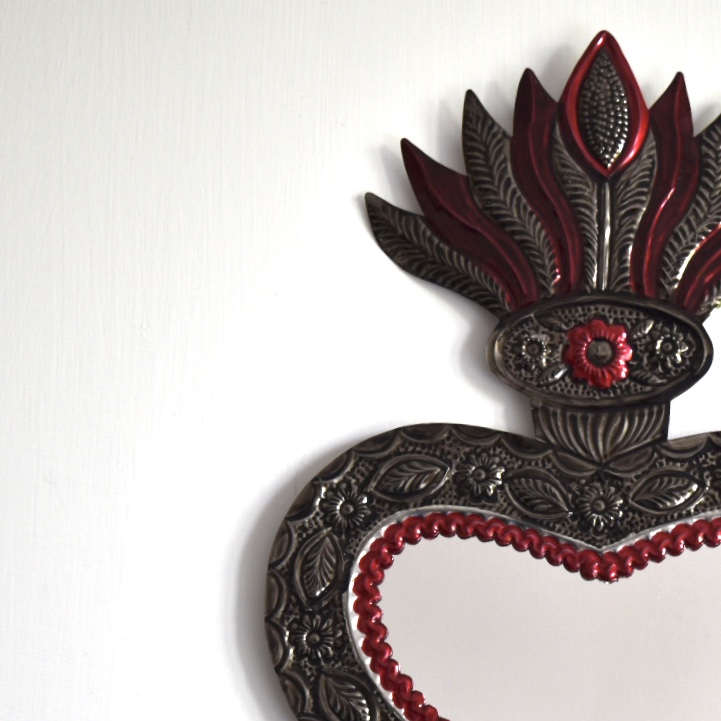 Decora la tua casa con un complemento d’arredo di artigianato messicano. Il cuore sacro è in latta riciclata e completamente realizzato a mano da artigiani della zona di Oaxaca.