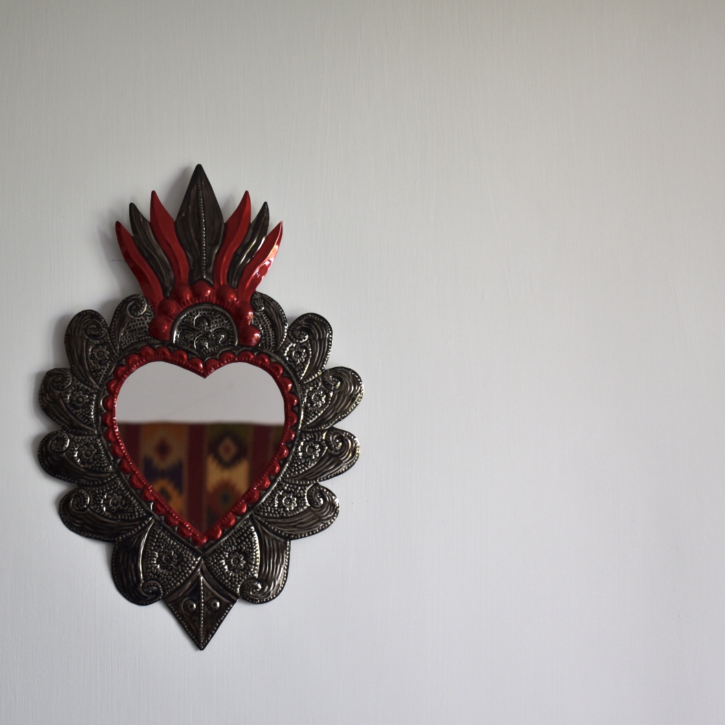 Decora la tua casa con un complemento d’arredo di artigianato messicano. Il cuore sacro è in latta riciclata e completamente realizzato a mano da artigiani della zona di Oaxaca.